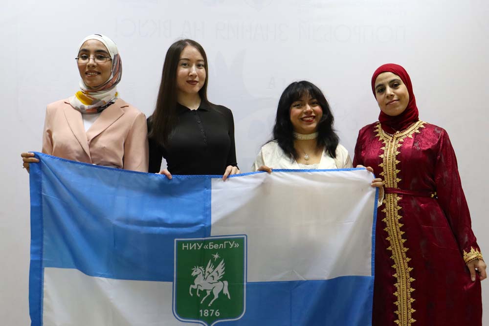 Четыре иностранных студента нашего университета приняли участие в окружном этапе Всероссийского конкурса для иностранных обучающихся «СтудRussia» на базе Московского государственного лингвистического университета. Очный этап собрал 140 иностранных обучающихся со всего Центрального федерального округа. НИУ «БелГУ» представляли Лоайза Солорзано Сильвия Фатима из института межкультурной коммуникации и международных отношений, Фержушия Мериям и Маматалиева Заринахон Аррабой кизи из института инженерных и цифровых технологий и студент института наук о Земле Талджеббинни Абдульраззак. Конкурс проходил в шести номинациях. Талджеббинни Абдульраззак из Сирийской Арабской республики занял третье место в номинации «Добро без границ».