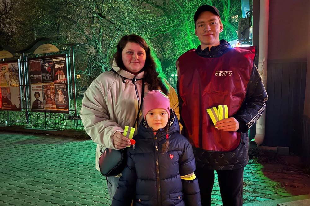 Волонтеры Белгородского государственного университета вышли на слабо освещённые улицы, пешеходные переходы и оживлённые нерегулируемые перекрёстки, чтобы напомнить жителям Белгорода о важности соблюдения правил дорожной безопасности в тёмное время суток, и раздали прохожим светоотражающие элементы.