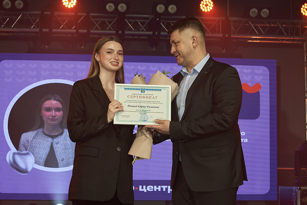 Мэр Белгорода Валентин Демидов в преддверии Дня добровольца вручил стипендии наиболее активным членам молодёжных экологических отрядов. В их числе шестеро студентов Белгородского госуниверситета – Софья Цыбина, Максим Шепелев, Максим Доронин (все – юридический институт), Екатерина Епринцева (медицинский колледж), Никита Масалитин (институт инженерных и цифровых технологий) и Карина Попова (институт наук о Земле).