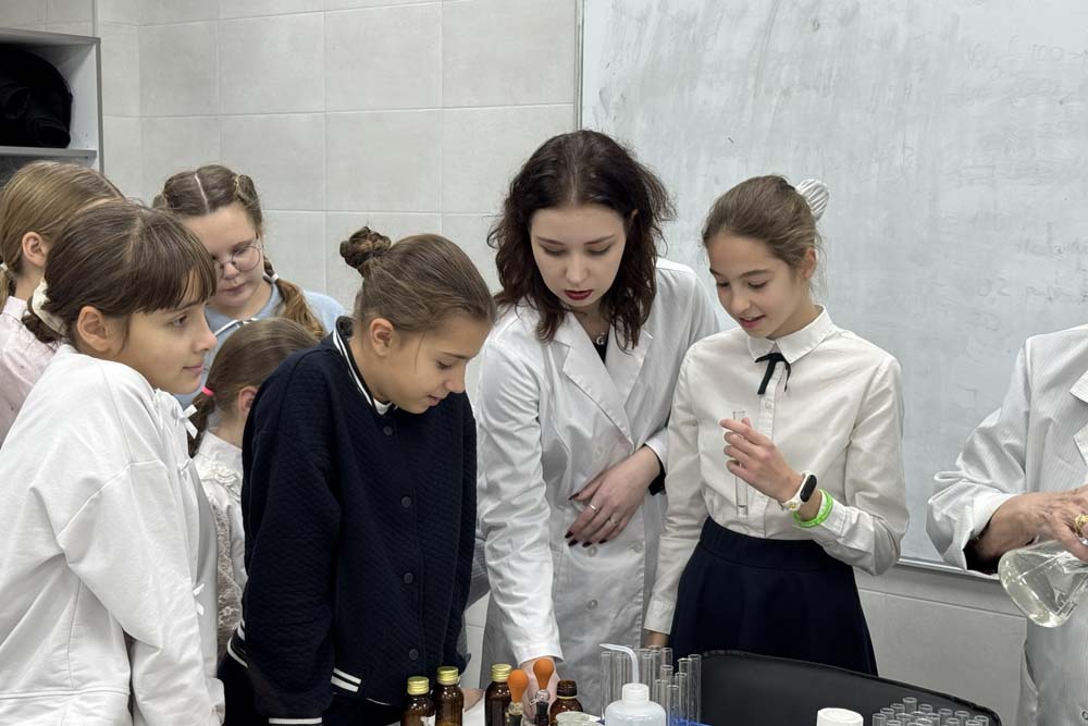 Студентка Белгородского госуниверситета провела для школьников мастер-класс по химии.