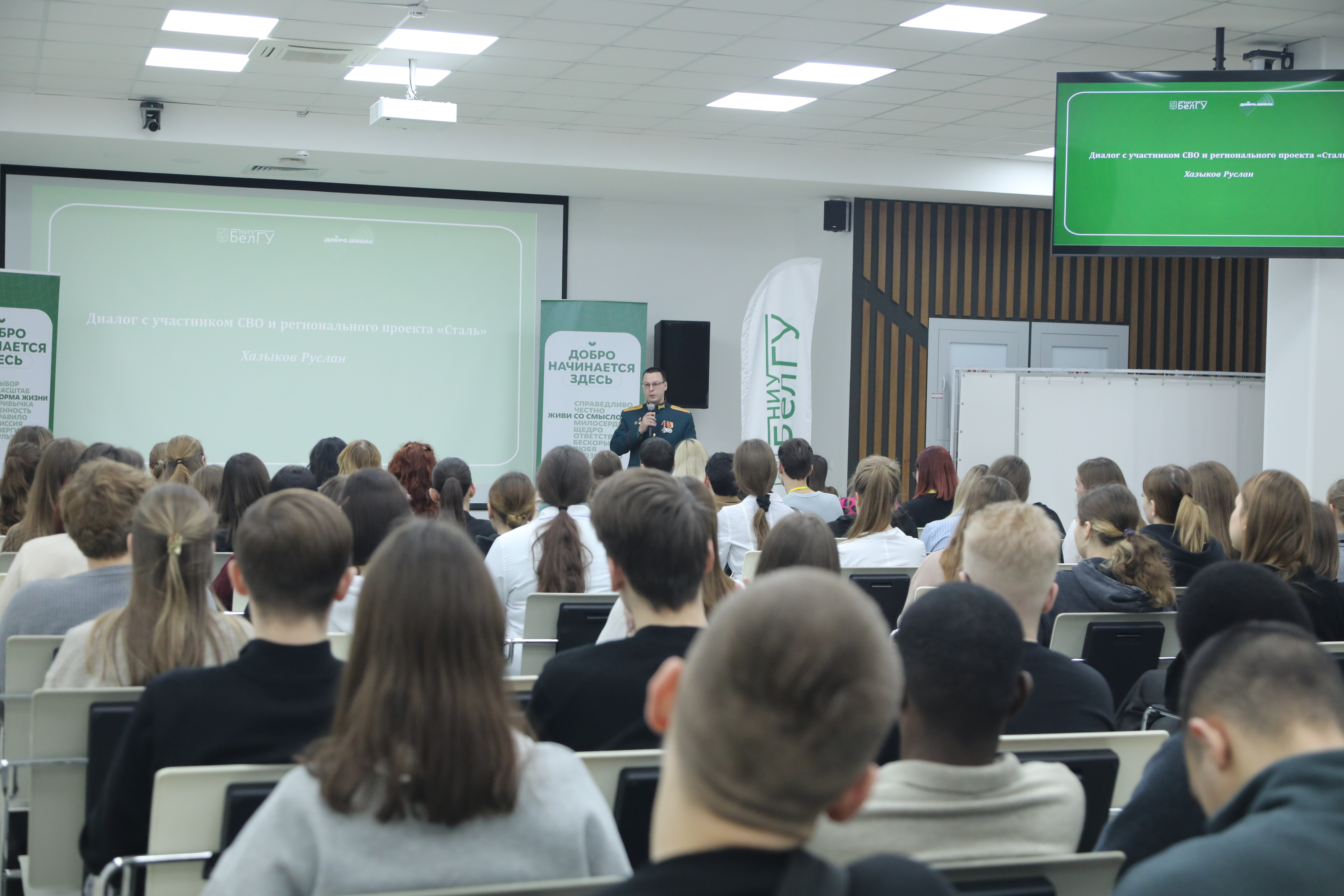 Открытие ДоброШколы состоялось в Центре проектных компетенций НИУ «БелГУ» и началось с исполнения гимна Российской Федерации академическим хором под управлением Урузмага Танделова. Участниками события стали студенты НИУ «БелГУ». Этот проект для них создали специалисты департамента молодёжной политики и воспитательной деятельности. С приветственным словом к ребятам обратилась проректор по воспитательной работе и молодёжной политике Елена Малышкина, которая отметила, что в зале собрались те, кто добр сердцем, кто хочет изменить жизнь к лучшему.