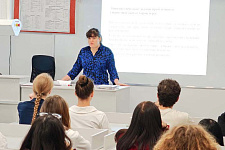 Доцент кафедры русского языка и русской литературы Кира Ли провела для школьников 9-11 классов интерактивный мастер-класс. Участники познакомились с особым миром лингвистических задач, узнали, что такое самодостаточная задача и какие виды заданий являются ключевыми на региональном этапе Всероссийской олимпиады школьников по русскому языку.