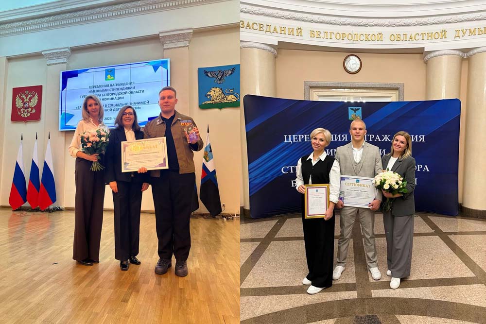 В Белгороде состоялись церемонии награждения студентов региональных вузов и СПО, выигравших конкурс на соискание стипендии губернатора в номинациях «Образование и педагогические науки», «Наука», «Социально значимая и общественная деятельность», «Спорт», «Творчество» и «За достижения в профессиональной деятельности».