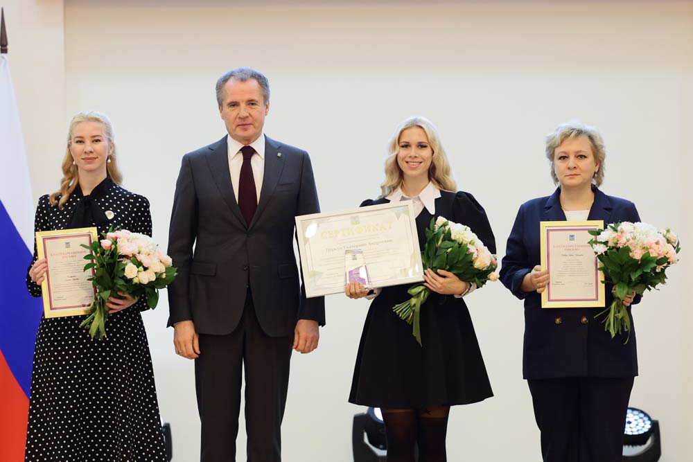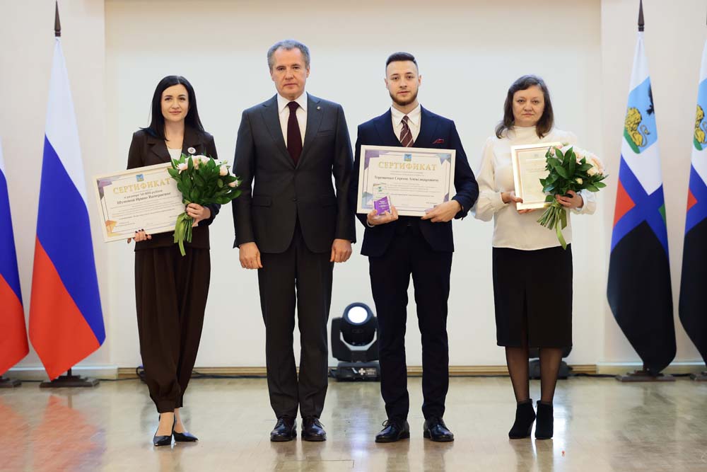 Губернатор Белгородской области Вячеслав Гладков, вручая сертификаты обладателям именных стипендий, подчеркнул, что поддержка талантливой молодёжи стоит во главе региональной политики.