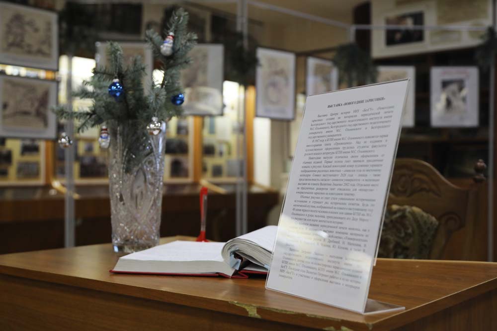 Выставка «Новогодние зарисовки», открывшаяся в преддверии календарного юбилейного года со дня основания университета, создана на материалах периодической печати Белгородского государственного педагогического института имени М.С. Ольминского, Белгородского государственного педагогического университета имени М.С. Ольминского и Белгородского государственного университета. В экспозиции представлены новогодние иллюстрации разных лет.