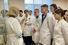 Под руководством заведующей кафедры биохимии Евгении Сладковой пошёл мастер-класс по оценке биохимических показателей слюны. Участники изучили функции слюны и методику забора образцов. Затем с помощью ассистента кафедры Александра Доманина в лаборатории будущие врачи научились определять значения общего белка и рН в слюне.