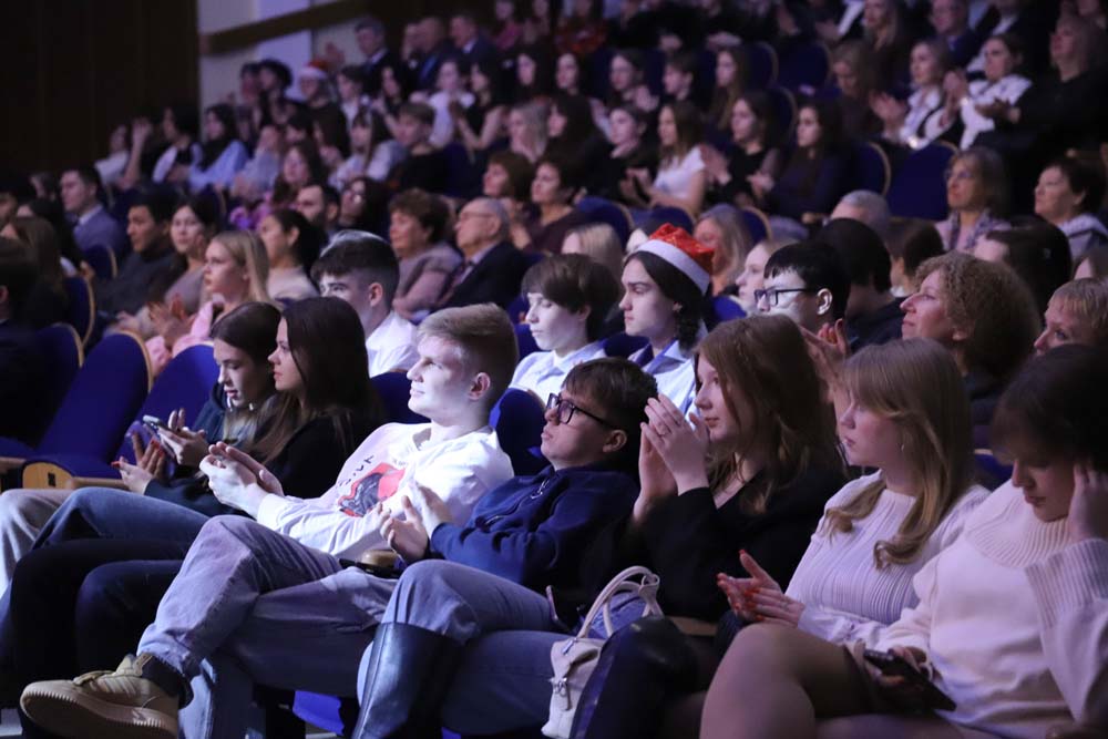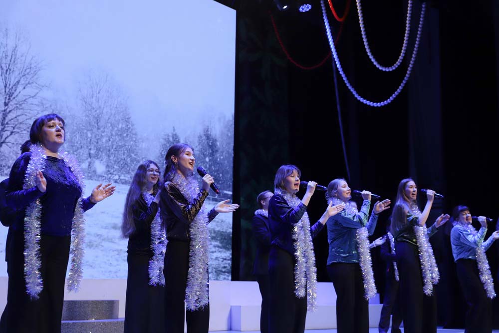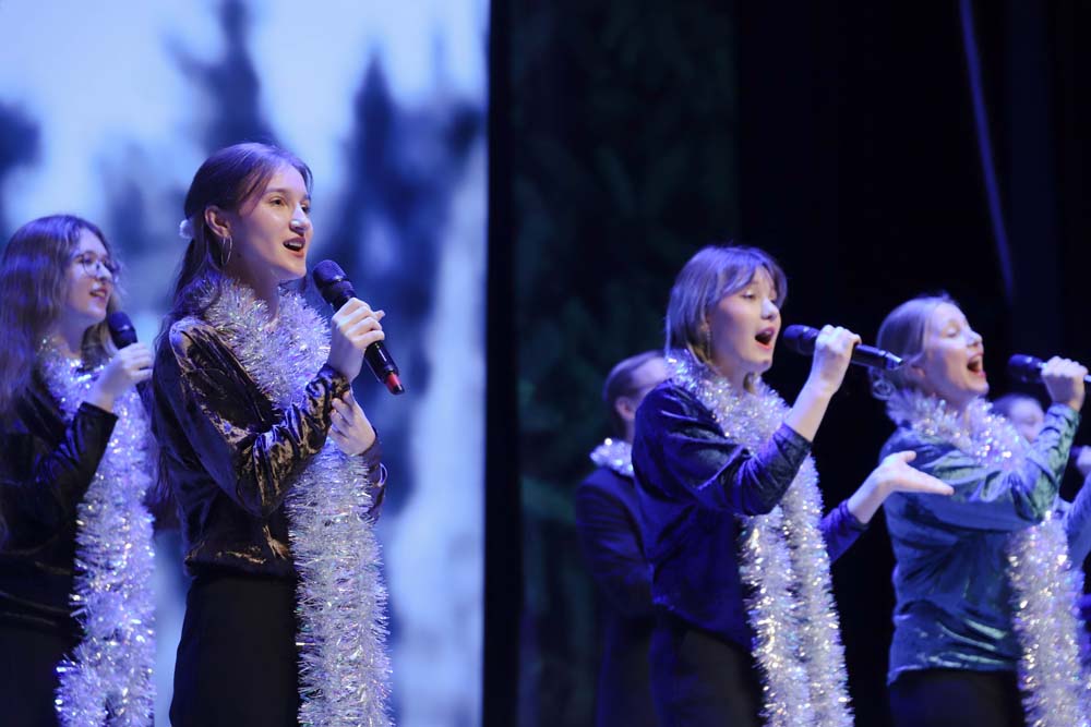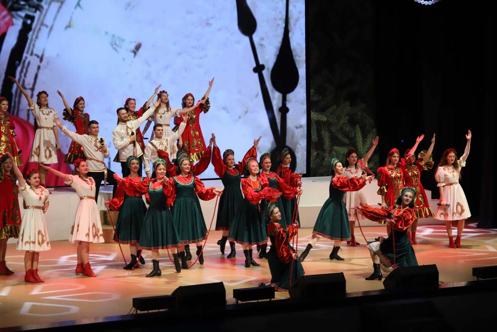 Праздничную программу украсили театрализованные номера и новогодние песни в исполнении творческих коллективов университета. Особое сказочное настроение и атмосферу волшебства создали как образы корреспондентов советской и постсоветской эпох, так и выступления «Школы ведущих», академического хора, ансамбля народной песни «Отрада», коллективов «Ритм», «Мел» и «Арт-Академия», вокальной группы «Университет», ансамбля народного танца «Забава» и балета «Мариданс».