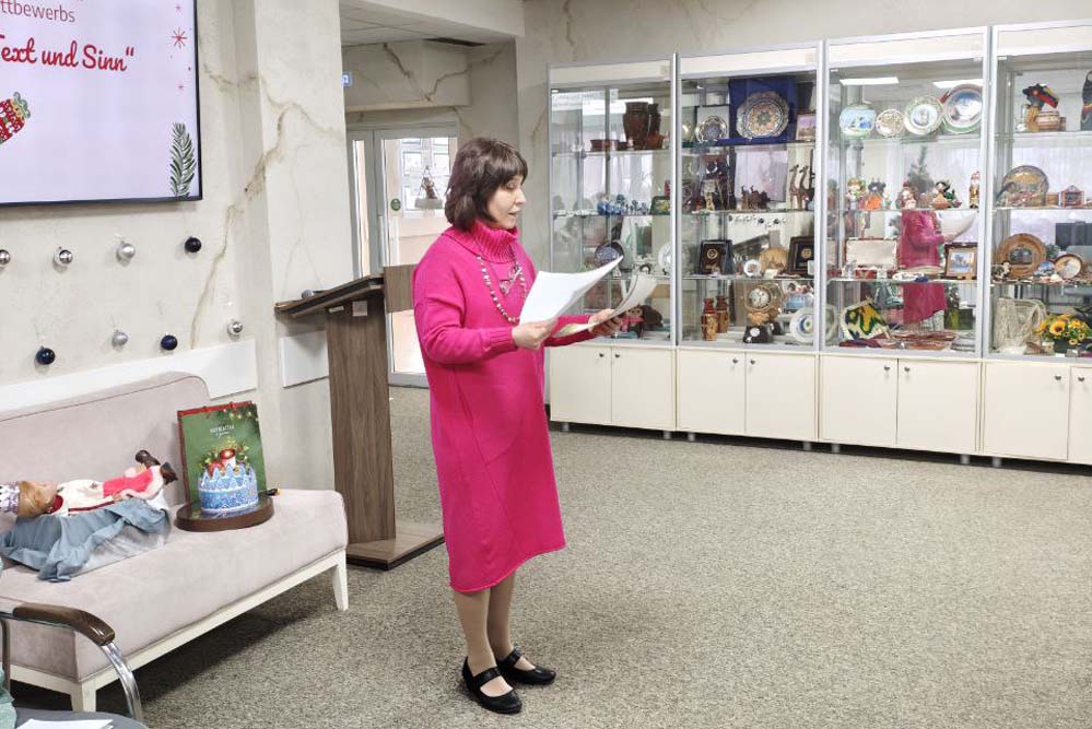 Особенно тепло встретили сопровождающиеся презентациями декламации рождественских стихов немецких поэтов в исполнении учащихся Гимназии №2 Мадины Шодиевой и Ульяны Горбоконь под руководством учителя немецкого языка Анастасии Синяковой.