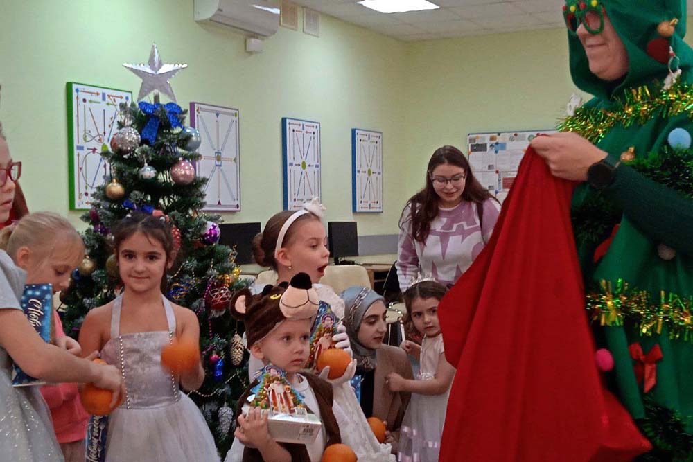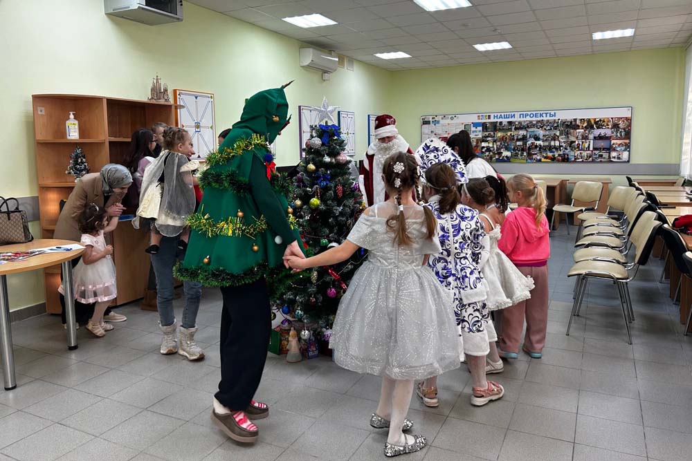 Организаторами новогоднего праздника выступили работники комнаты матери и ребёнка. Программа утренника включала в себя театрализованное представление, интерактивные игры и познавательные активности. Особый интерес у юных гостей вызвало появление сказочных персонажей – Ёлочки, Снегурочки и Деда Мороза. Вместе с Ёлочкой и Снегурочкой дети танцевали, собирали «снежки», искали маленькие копии ёлочки, собирали паззлы с подарками.