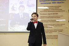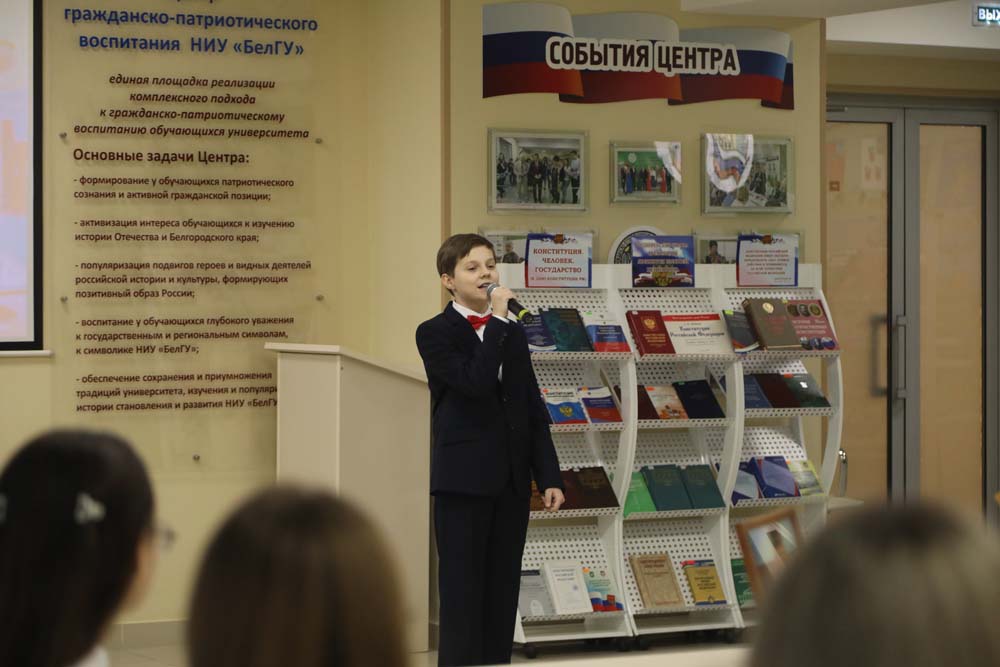 Ведущие вечера – специалист Центра молодёжных инициатив НИУ «БелГУ» Игорь Пархомов и председатель студактива Центра гражданско-патриотического воспитания обучающихся Елизавета Рыбочкина рассказали студентам о подвиге Владимира Васильевича во время первой Чеченской войны, за который он был удостоен звания Героя Российской Федерации и «Золотой Звезды».