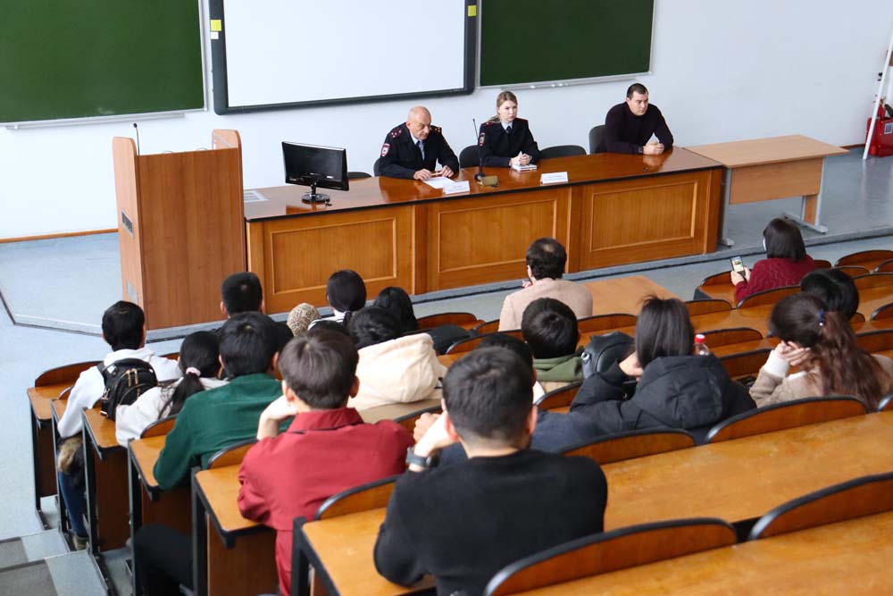 На встрече с представителями правоохранительной системы, занимающимися профилактикой и противодействием экстремизму, терроризму и прочим деструктивным формам поведения до сведения иностранных студентов довели изменения в законодательстве, вступившие в 2025 году, касающиеся символики, материалов, информационных ресурсов объединений, запрещённых на территории РФ.