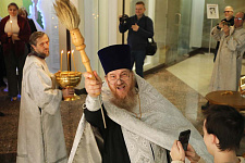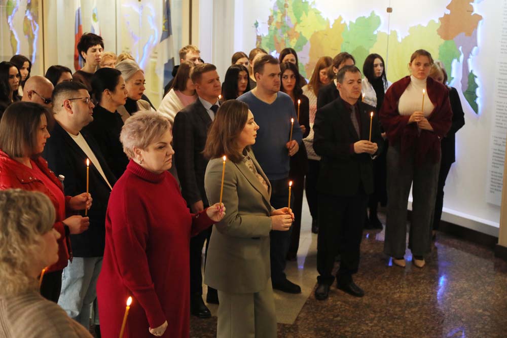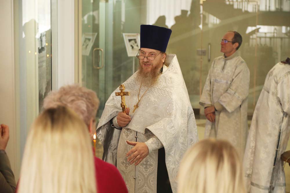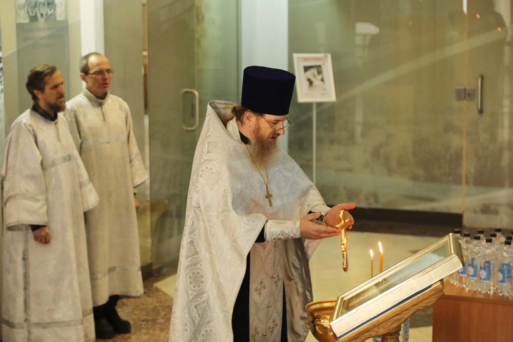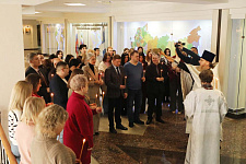 В храме Архангела Гавриила настоятель – протоиерей отец Роман провёл Божественную литургию, а в холле главного корпуса вуза – молебен для сотрудников и обучающихся.