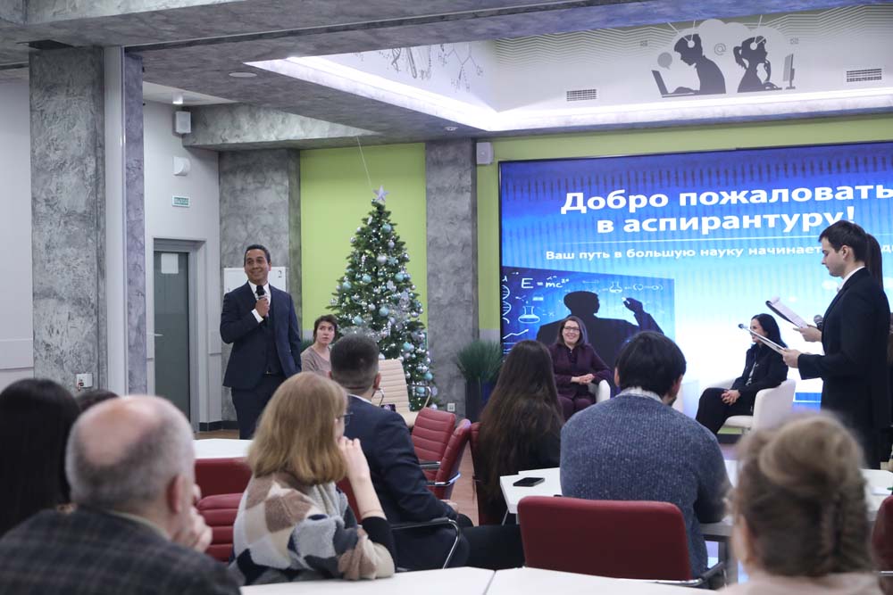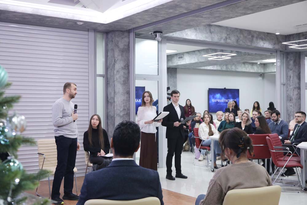 С историями своего научного успеха выступили обладатели стипендии Президента РФ по ПНР РФ 2024 года аспирант медицинского института, Евгений Патраханов и аспирант института инженерных и цифровых технологий Илья Астахов. Также о своём пути в науке рассказали аспиранты-иностранцы: выпускник аспирантуры института межкультурной коммуникации и международных отношений, кандидат филологических наук, доцент кафедры второго иностранного языка педагогического института Хасинто Омар Контрерас Сарриа и аспирантка медицинского института Жылдыз Исабаева.