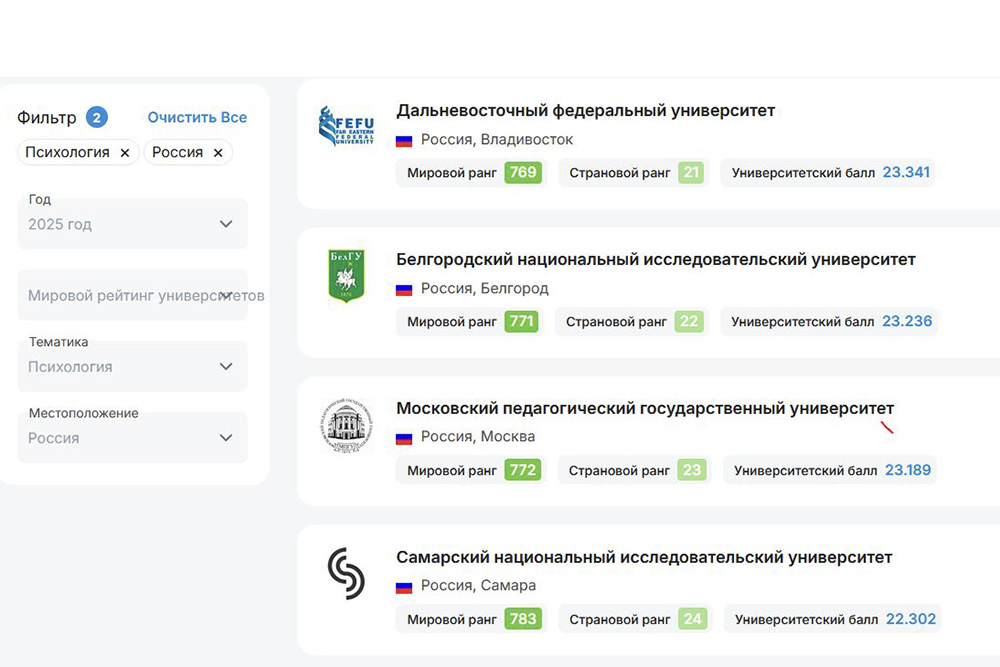 – по Общественным наукам – 948 место из 1044 вузов мира и 88 место из 105 вузов РФ.
