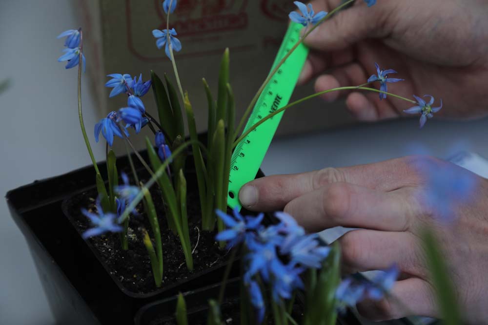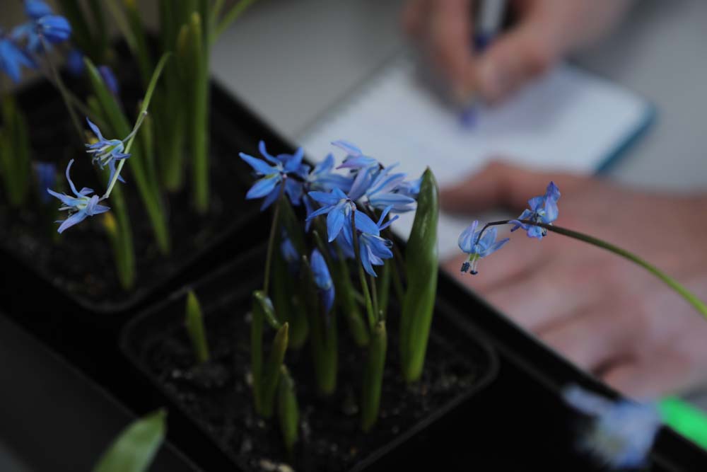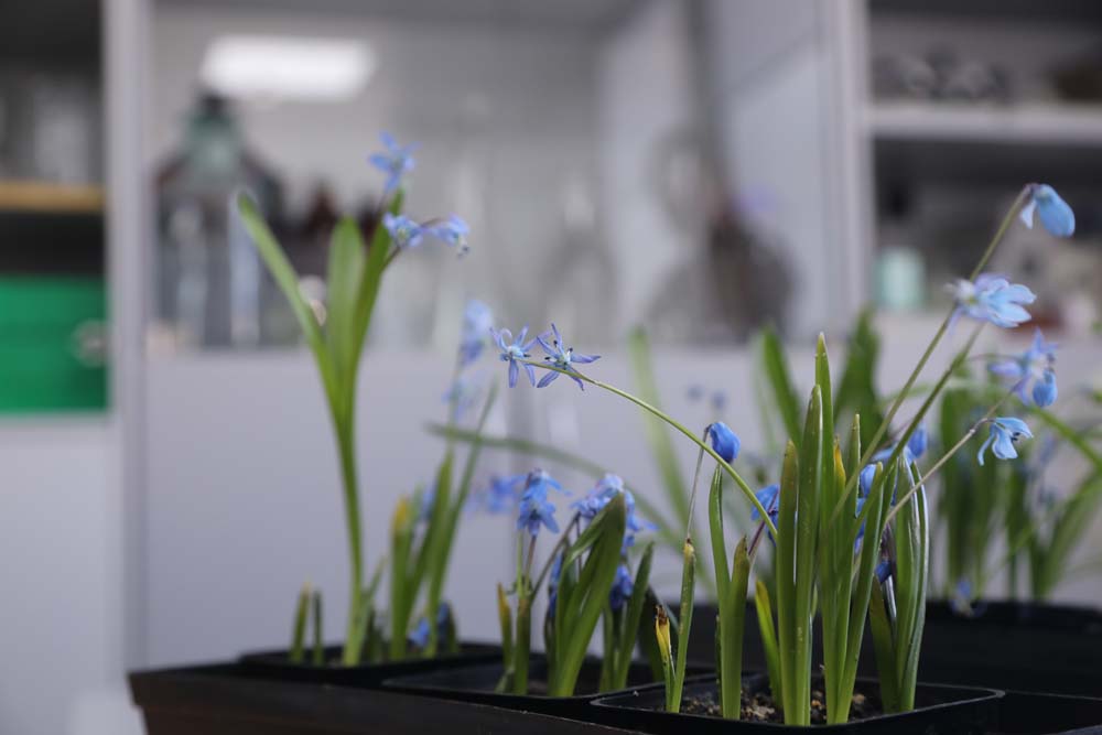 Директор института фармации, химии и биологии НИУ «БелГУ» Татьяна Глубшева показала распустившиеся первоцветы: сейчас в эксперименте выгонка пролески сибирской, которую некоторые ошибочно принимают за подснежник. Этот первоцвет, называемый также сциллой, цветёт в марте-апреле, радуя глаз всего несколько недель.