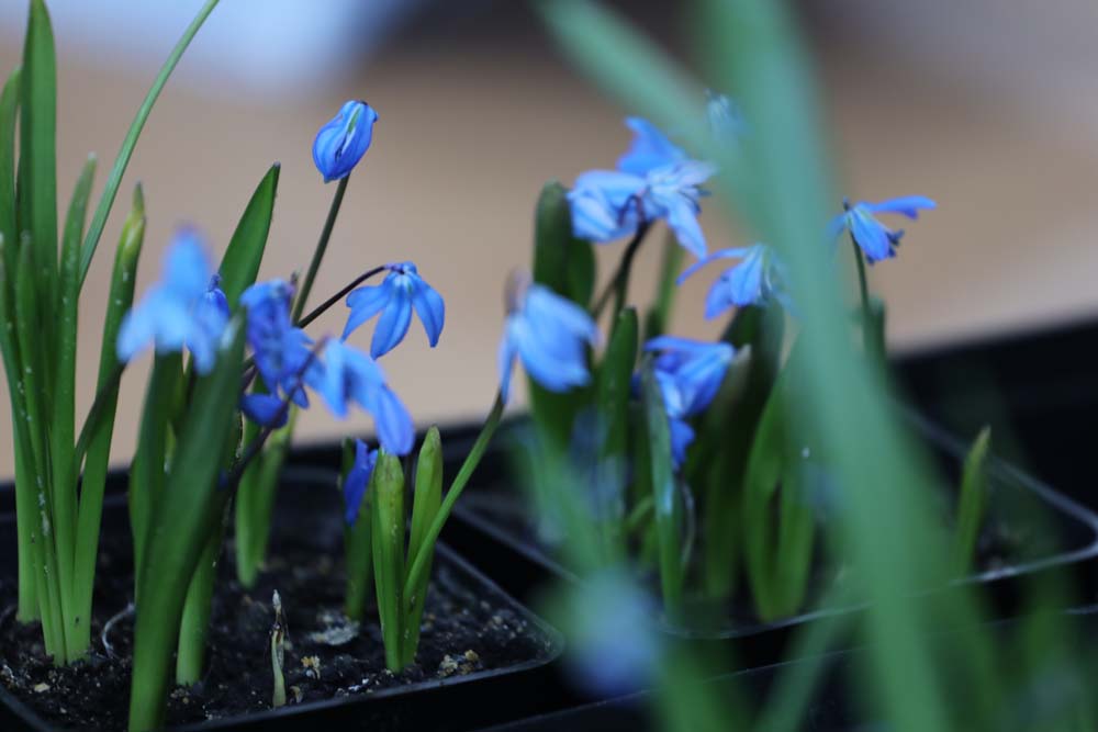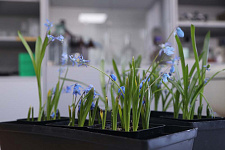 Над выгонкой пролески сибирской в этом году работали аспиранты первого курса обучения Дмитрий Сирик и Дарья Агаева. Луковицы были подготовлены и заложены в октябре 2025 года, а уже в январе ребята получили первую волну цветения. До подходящего момента луковицы в субстрате хранили в холодильнике, имитирующем условия зимы и постепенно наступающей весны. Всего планируется получить три волны цветения – по одной в месяц.