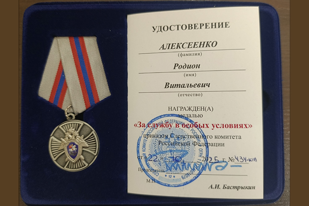 Ведомственной награды Следственного комитета Российской Федерации удостоен студент юридического института за выполнение служебных задач на территории проведения специальной военной операции.