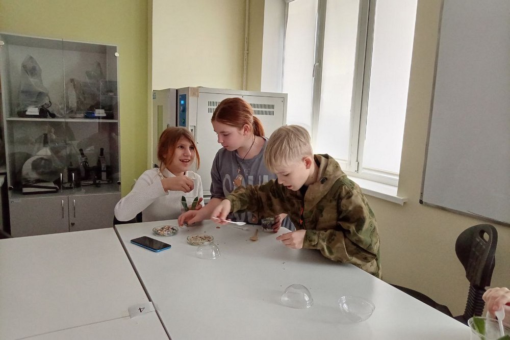Мастер-класс по изготовлению флорариума провели лаборанты биологического учебно-научного комплекса «Инновационные решения» Софья Ахапкина, Виктория Ефимова, Анастасия Гаркавая. Школьники изучили принципы автотрофной мини-экосистемы: круговорот воды благодаря транспирации и конденсации, роль слоистой структуры для аэрации и фильтрации, а также научились подбирать растения на основе экологии вида для устойчивого симбиоза. На практике, используя предоставленные инструменты и материалы, гости создали уникальную композицию из растений, камней и декора, освоили основы ухода и забрали готовый флорариум на память.