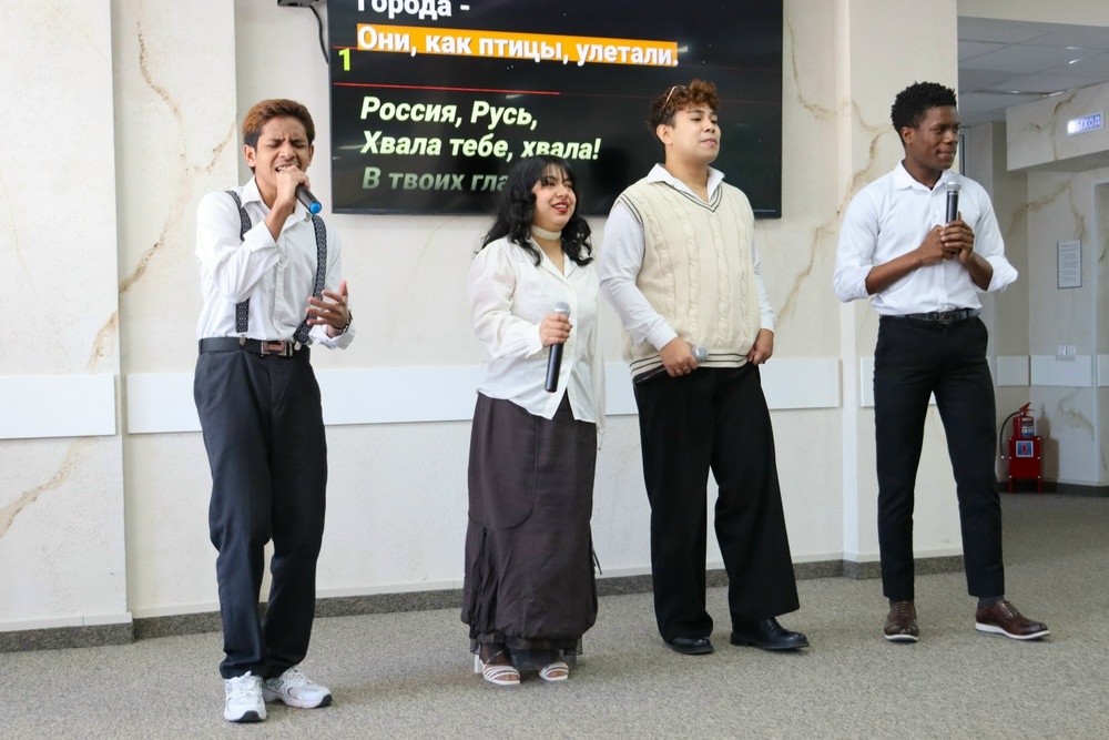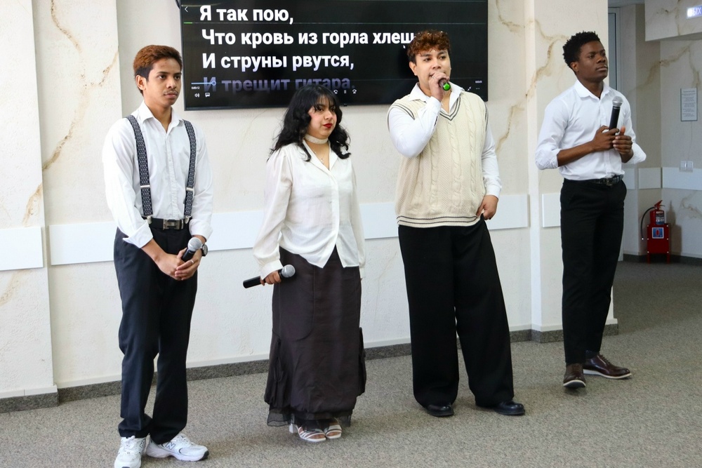 В знак любви и уважения к России, благодарности воинам, защищающим страну, интернациональный коллектив студентов и выпускников нашего вуза из Анголы, Индонезии и Эквадора исполнил пронзительную песню «Хвала!» Юлии Чичериной на слова Александра Проханова.
