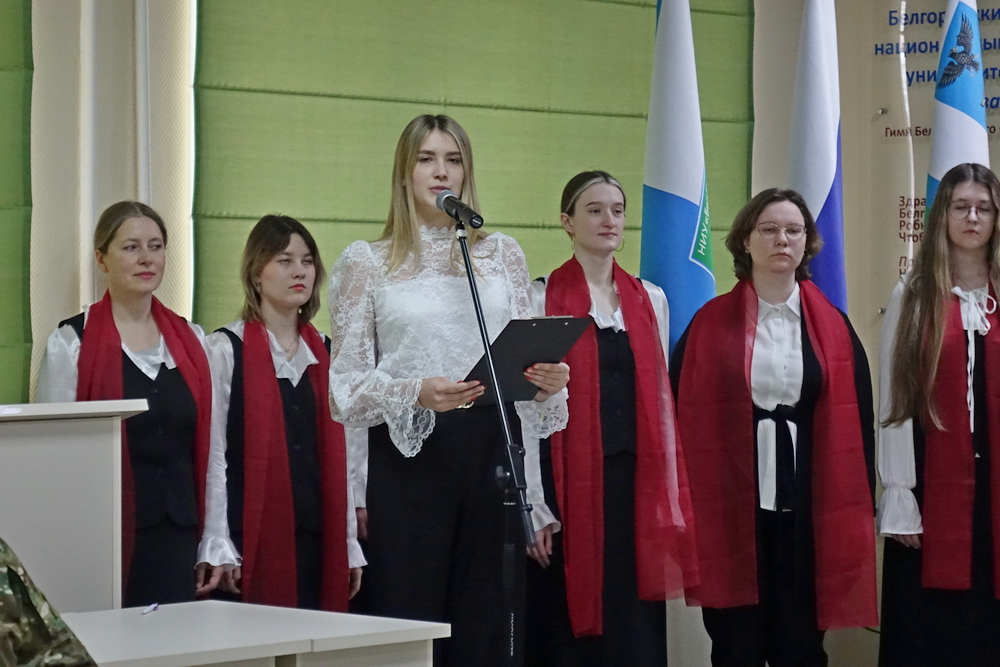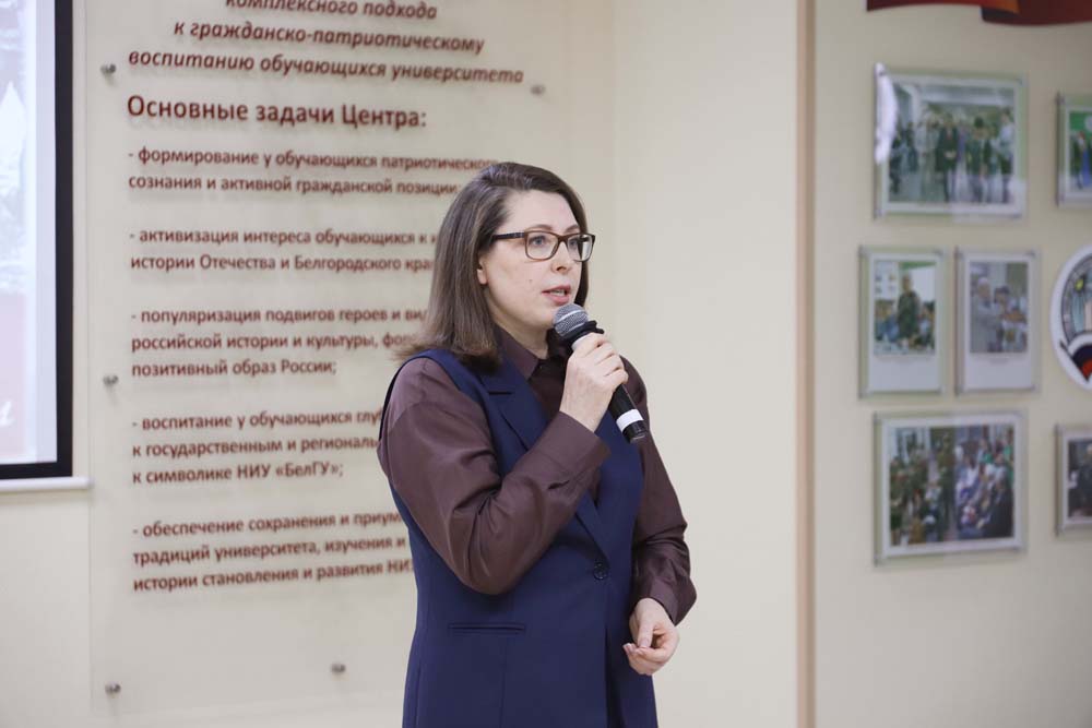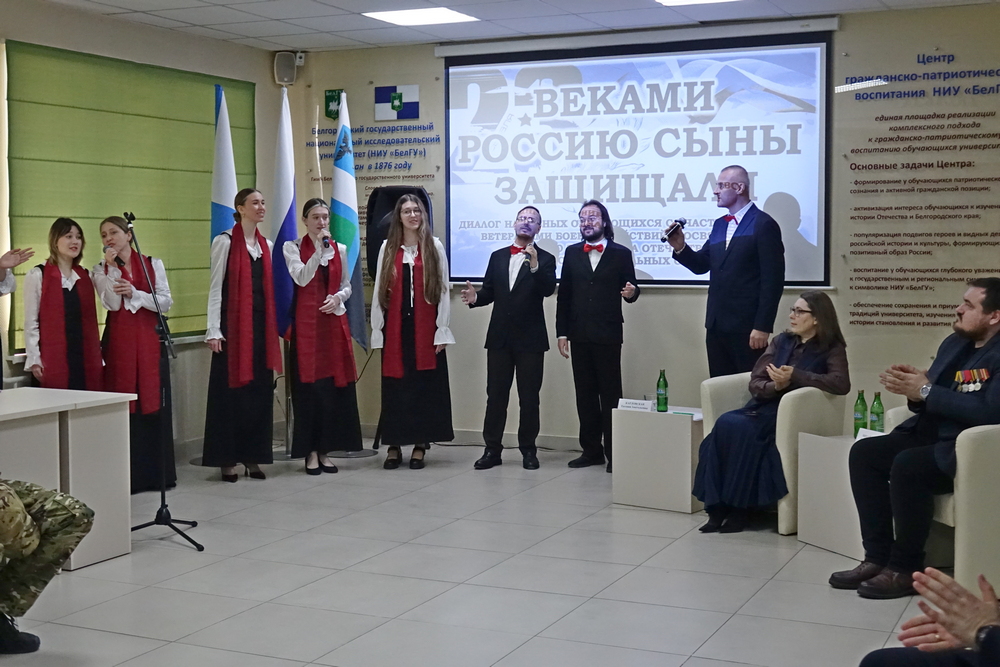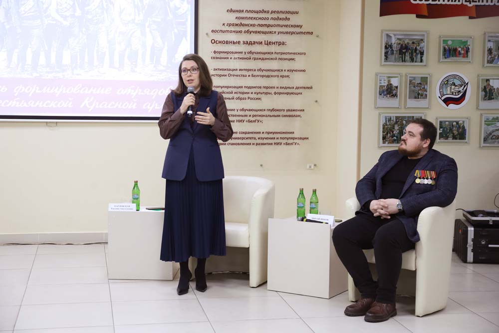 Мероприятие открылось с Гимна Российской Федерации в исполнении академического хора НИУ «БелГУ» под руководством Урузмага Танделова. С приветственным словом к гостям обратилась Евгения Карловская, которая отметила важность встречи молодых людей с действующими героями. Руководитель вуза подчеркнула, что в современных реалиях очень важно сохранить патриотизм у молодого поколения и не допустить искажения исторических фактов.