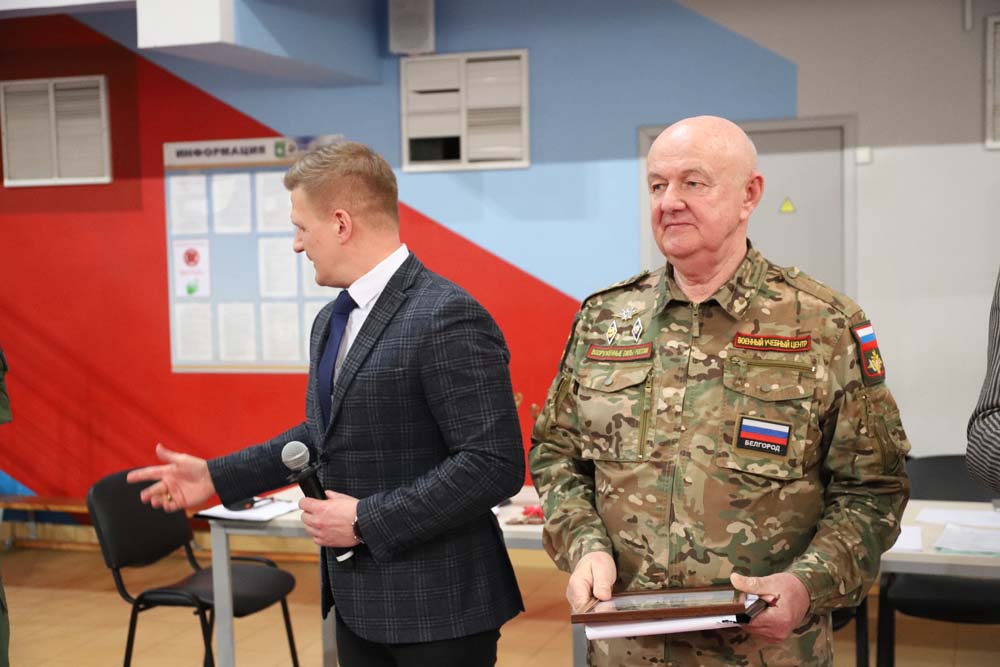 На мероприятии также присутствовали директор Учебного центра начальной военной подготовки НИУ «БелГУ» Владимир Кривченков, председатель объединенного профкома НИУ «БелГУ» Валерий Тимофеев и ветеран боевых действий в Афганистане, ветеран ВДВ Сергей Сапронов.