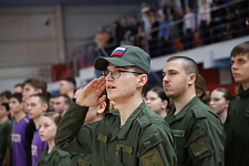 Мероприятие, в котором приняли участие студенты институтов и колледжей, было посвящено Дню защитника Отечества.