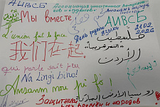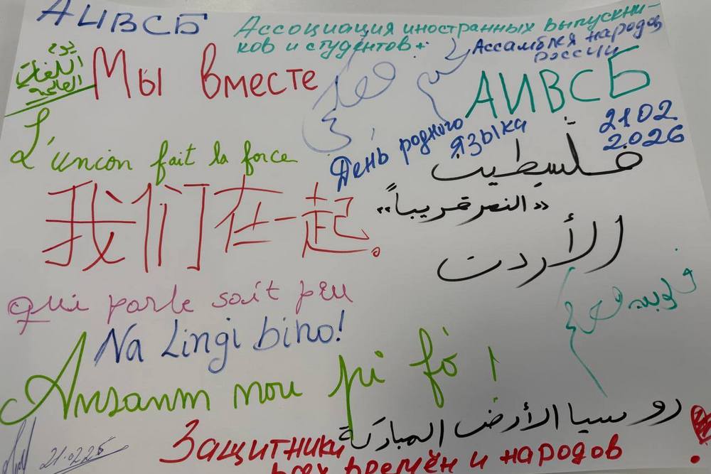 В завершение мероприятия участники создали плакат с объединяющим слоганом «Мы вместе», написав его на своих родных языках: русском, арабском, французском, креольском, китайском.