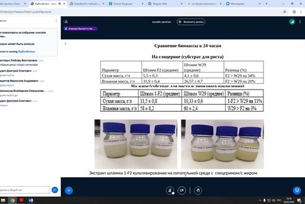 На мероприятии привели примеры того, какие параметры могут учитываться при культивировании, в том числе и в ферментере. Ирина Витальевна также акцентировала внимание слушателей на важности понимания локализации целевого продукта в клетках продуцента (в данном случае липидов) – нужно знать место накопления конкретных липидов, чтобы повышать эффективность работы и в дальнейшем отработать методики извлечения целевого продукта.