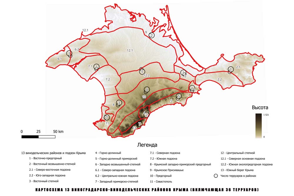 Границы винодельческих зон были согласованы с ландшафтной картой Равнинного Крыма, составленной заведующей кафедрой физической географии, океанологии и ландшафтоведения Таврической академии Крымского федерального университета им. В. И. Вернадского, профессором Екатериной Позаченюк.