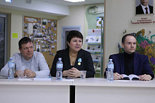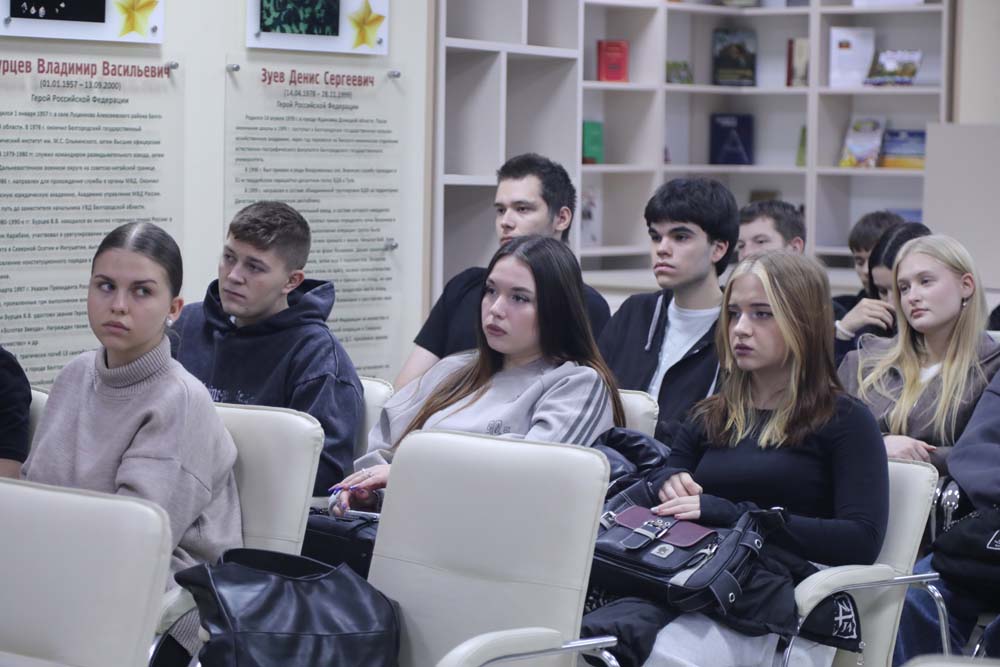 В Центре гражданско-патриотического воспитания обучающихся собрались обучающиеся разных институтов НИУ «БелГУ». Гостями встречи стали белгородские писатели – выпускница филологического факультета БелГУ, руководитель литературной студии «Младость», работающей на базе Пушкинской библиотеки-музея, редактор литературного журнала «Дрон» Людмила Брагина, а также редактор литературного журнала «Дрон» Олег Роменко и главный редактор редакционно-издательского центра НИУ «БелГУ», прозаик Евгений Толмачёв.