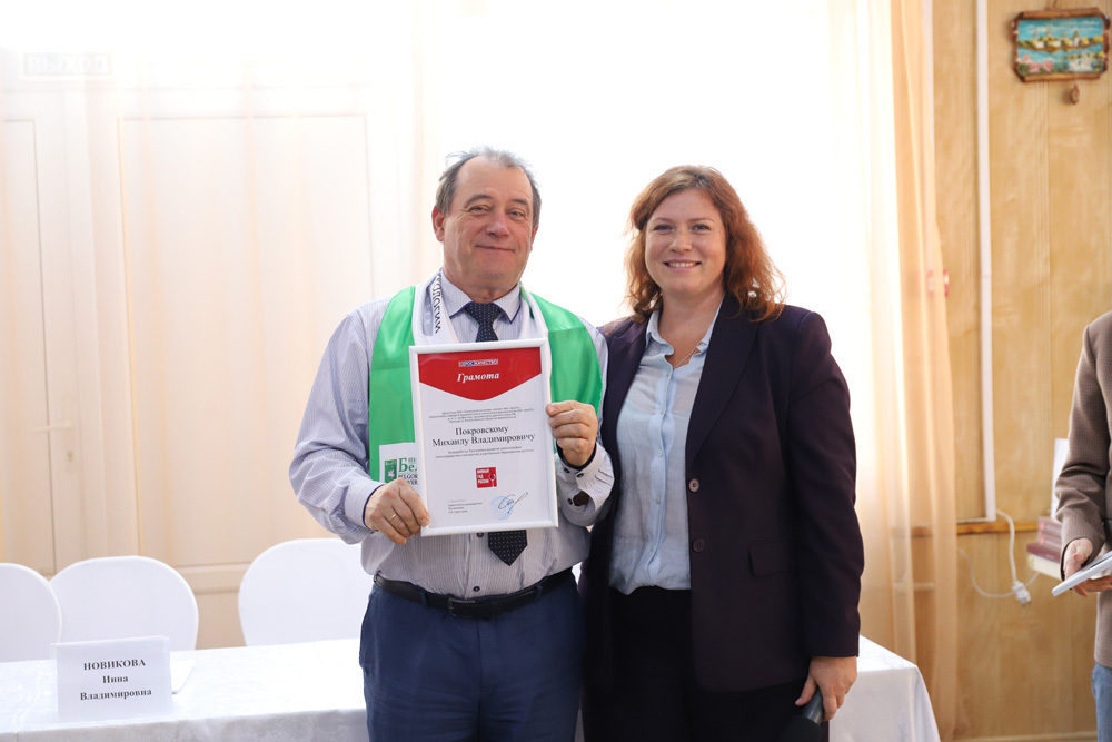 Профессор Покровский также сообщил о том, что в НИУ «БелГУ» путём микроклонирования получили 5000 саженцев неукрывных сортов винограда, и о создании при поддержке программы «Приоритет-2030» БАДа из концентрата ягод красного винограда, способного защищать от оксидативного стресса. Он отдельно отметил, что специалисты вуза проводят генотипирование всех саженцев с выдачей сертификата на каждый сорт, а испытательный участок НИУ «БелГУ» входит в реестр федеральных насаждений. Владимир Михайлович также подчеркнул важность междисциплинарного подхода и развития сотрудничества с вузами и промышленными партнёрами.