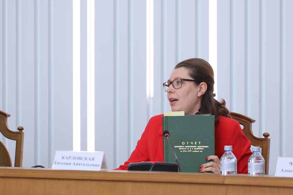 Ректор обратила внимание на важную роль вуза в совершенствовании системы работы средних школ в контексте государственной политики, приведя цитаты из исторических документов – отчётов, датируемых 1976 годом.