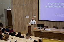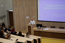 Темой разговора со студентами стали традиционные российские духовно-нравственные ценности, место России в историческом процессе.