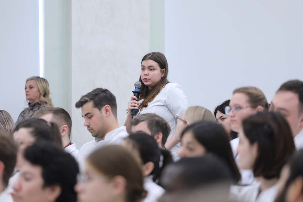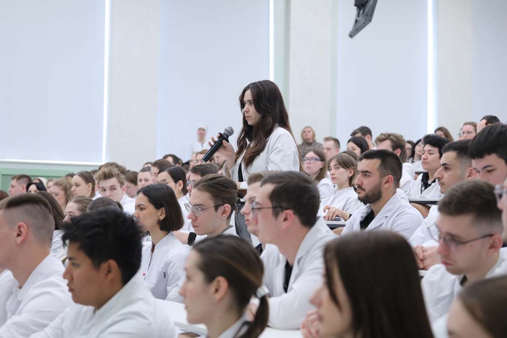 – У вас есть уникальная возможность задать свой вопрос не просто заведующему кафедрой, а сенатору. Надеюсь, ваши вопросы будут интересными и актуальными, помогут вам. В этом году нас всех ждут изменения, которые затронут и сам процесс получения медицинского образования, и дальнейшее трудоустройство, и лечебные учреждения в плане отношения к молодым специалистам, – сказала Евгения Анатольевна.