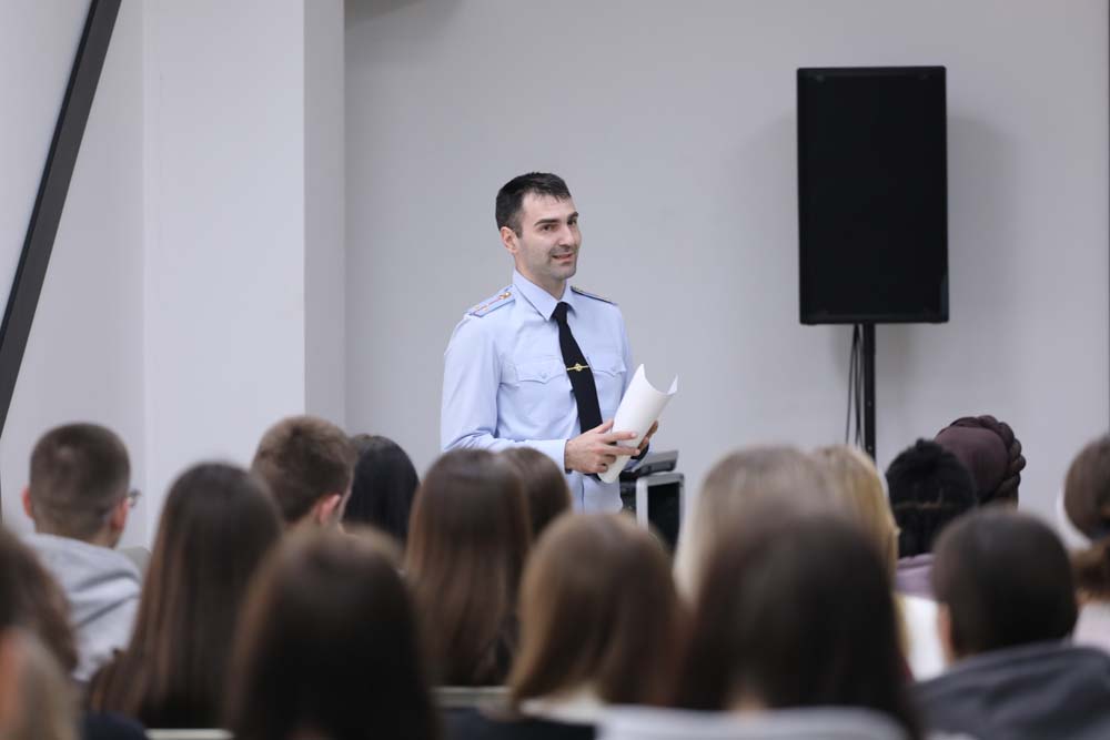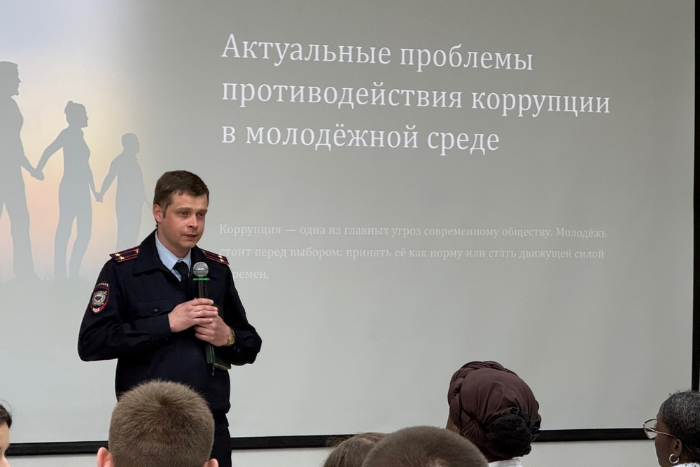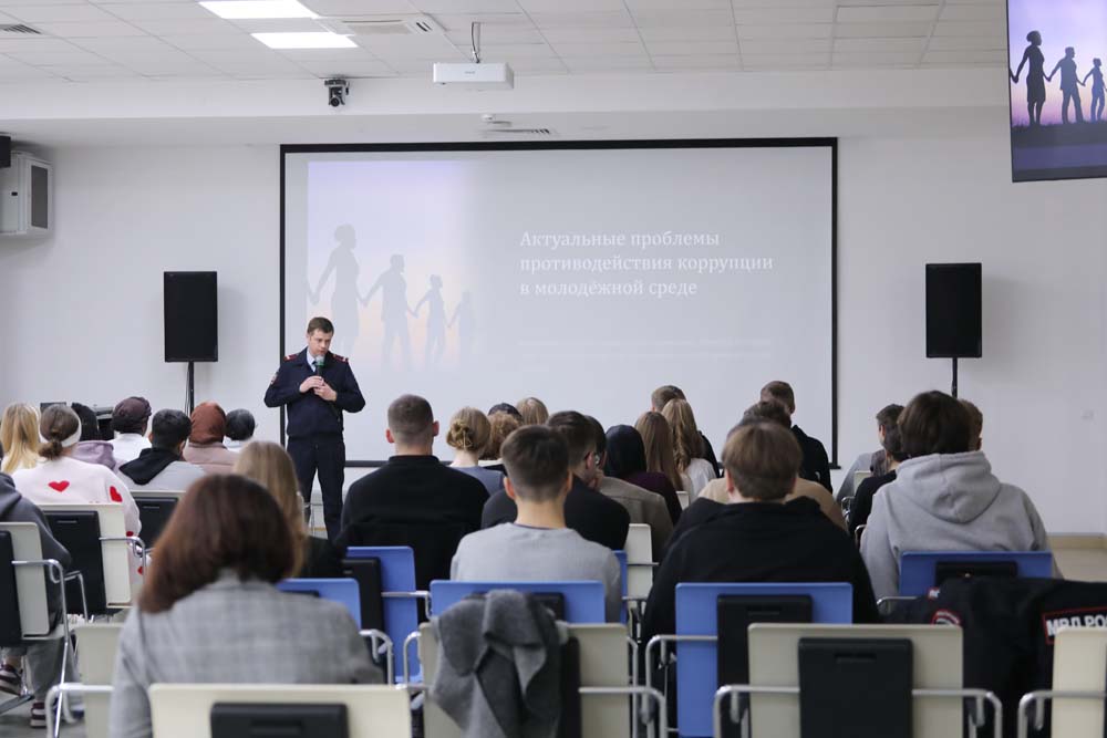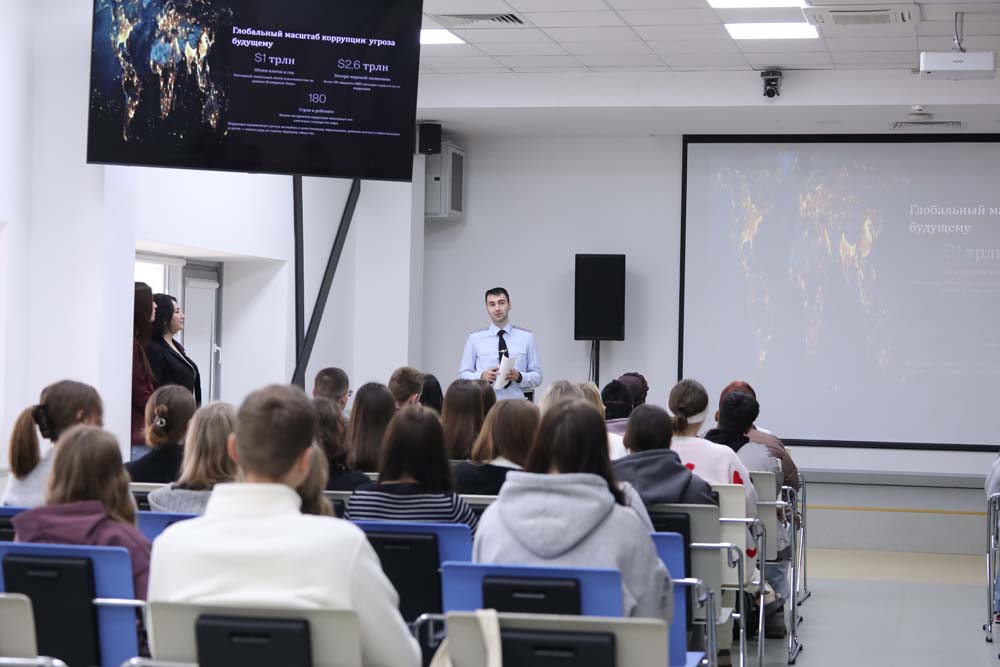 О проблемах противодействия коррупции в молодёжной среде говорил Александр Стратевчук. Он разъяснил студентам, какие правовые последствия влечёт дача взятки, и напомнил об ответственности, предусмотренной законодательством. Спикер также привёл статистические данные, которые, по его словам, свидетельствуют о росте числа подобных правонарушений в сфере образования.