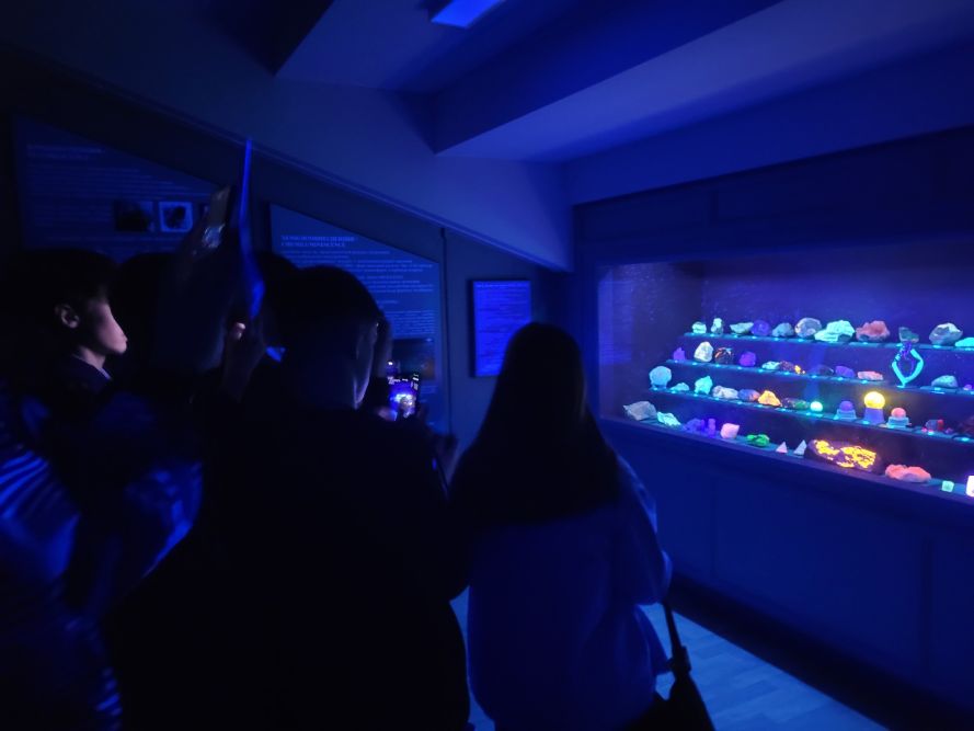 Посещение «тёмной комнаты» стало кульминацией экскурсии. Экспонаты светятся в темноте и ультрафиолете, что позволяет наглядно ознакомиться со свойствами некоторых минералов.