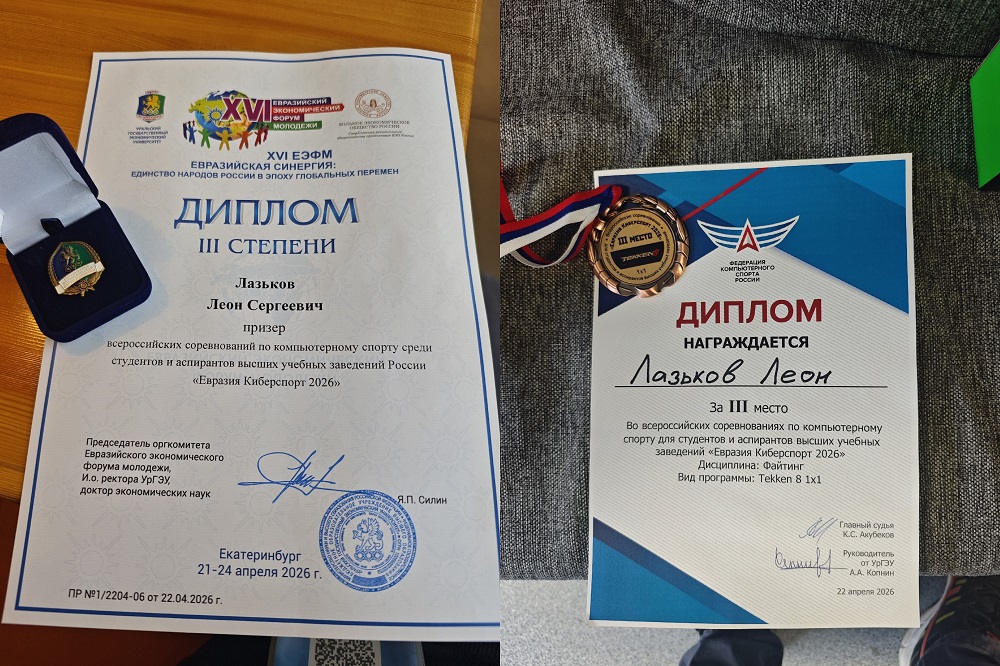 По результатам турнира магистрант факультета физической культуры педагогического института Белгородского госуниверситета Леон Лазьков замкнул тройку сильнейших в дисциплине «Файтинг» (Tekken 8), выиграв бронзовую медаль национальных соревнований.