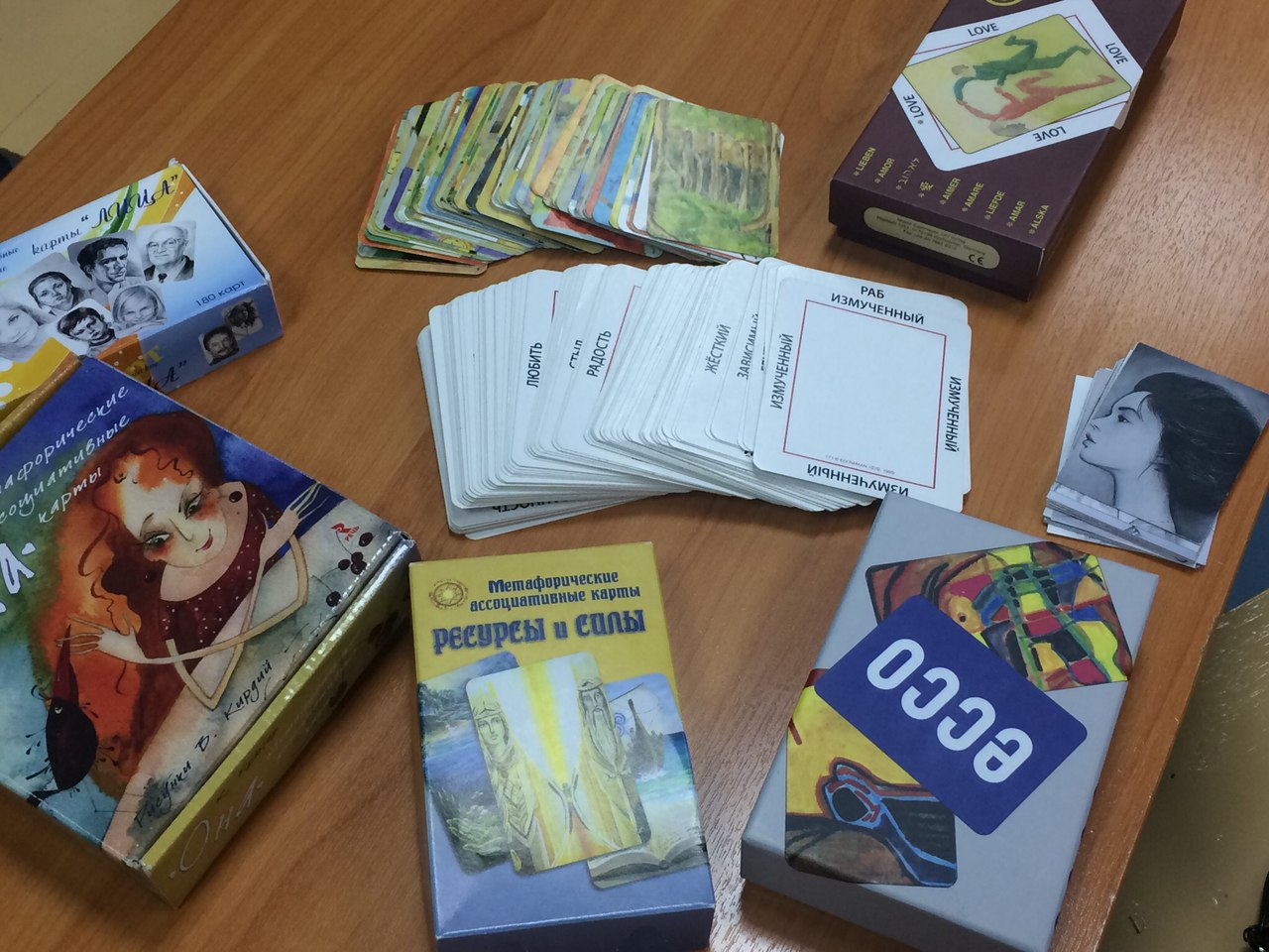 Студенты познакомились с основами и принципами работы с метофорическими ассоциативными картами (МАК). Метафорические карты—это не новый вид терапии, не направление, не отдельный подход. Это инструментарий, который помогает эффективно и качественно выполнять свою работу специалисту, принадлежащему к любой школе. Проективные карты — это зона взаимодействия между психотерапевтом и клиентом.