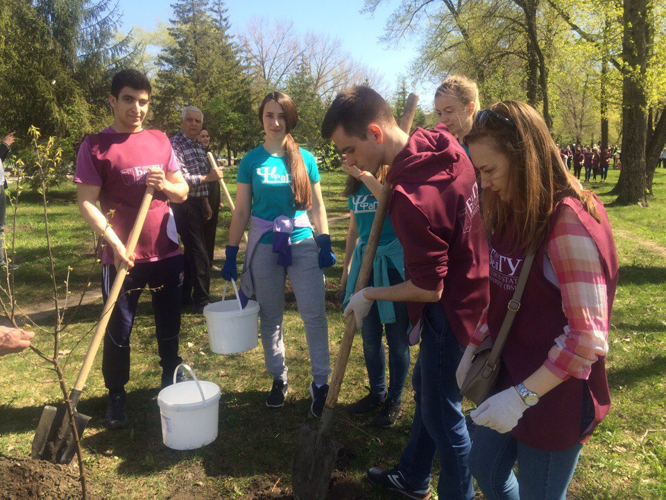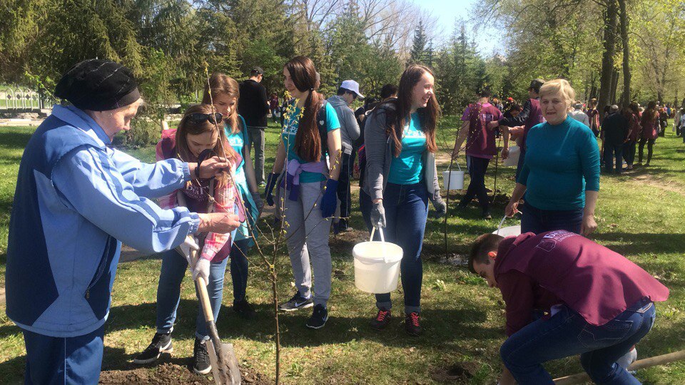 В рамках проведения акции «Дети Великой Отечественной войны» ребята украсили территорию парка имени Юрия Гагарина саженцами черемухи и каштанов.