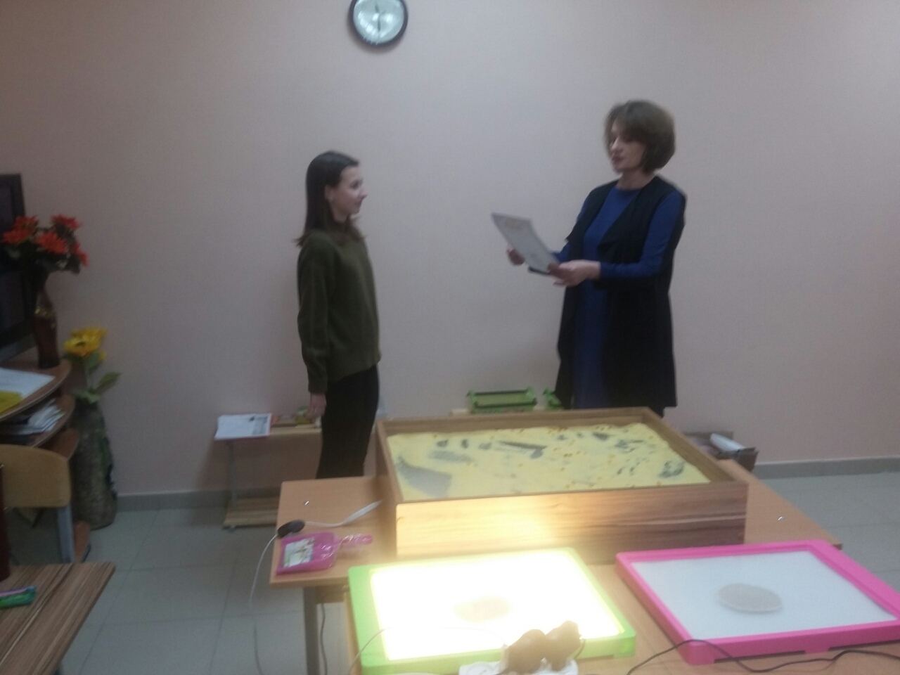 К этому замечательному празднику было приурочено вручение благодарностей волонтерам факультета психологии за помощь в проекте «Добрый песок». Проект был направлен на психологическую реабилитацию детей с ограниченными возможностями здоровья: нарушениями в работе центральной нервной системы, ДЦП, расстройством ментального спектра. Каждый маленький участник проекта совершенно бесплатно проходит двухмесячный реабилитационный курс песочной терапии Sand-art. За каждым ребенком был закреплен волонтер. Именно благодаря помощи волонтеров, удалось успешно реализовывать индивидуальный подход к каждому участнику проекта, максимально включить его в терапевтический процесс. 6 декабря состоялось торжественное вручение грамот-благодарностей за волонтерскую помощь от лица руководства школы песочной терапии и творчества «Созвездие добра», а так же факультета психологии педагогического института НИУ БелГУ и Всероссийской организации родителей детей-инвалидов. Со словами благодарности к волонтерам обратилась организатор проекта доцент кафедры психологи Жеребненко Оксана Александровна, которая отметила их неоценимый вклад в реализацию социально значимых проектов и выразила надежду на дальнейшее сотрудничество.