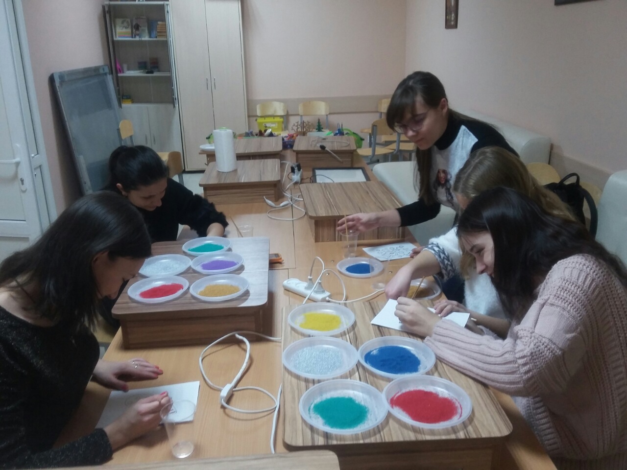 Доцент кафедры психологии Жеребненко О.А. провела благотворительный мастер-класс для студентов-волонтеров проекта «Добрый песок: Возможности песочной терапии». Целью мастер-класса было углубленное знакомство будущих помогающих практиков с методами песочной терапии Sand-art. Участники мастер-класса освоили технологию создания песочных гравюр, познакомились с правилами и техническими «тонкостями» организации работы на песочных столах. Так же, в ходе мастер-класса, студенты смогли познакомиться и попрактиковаться в проведении психотерапевтических упражнений: "Необитаемый остров и в чем его сила?", "Важные события года и новогодние чудеса", в которых смогли интегрировать песочную терапию и метафорические ассоциативные карты. Оксана Александровна, не раз высказывала благодарность волонтерам, отмечая их неоценимый вклад в реализацию социально значимых проектов.