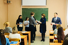 В ходе расширенного собрания были подведены итоги уходящего 2018 года, отмечены студенты внесшие вклад в развитие факультета и проявившие себя в разных сферах деятельности. И.о. декана факультета Гребнева Валентина Викторовна в торжественной атмосфере вручила серебренные и бронзовые значки Всероссийского физкультурно-оздоровительного комплекса ГТО следующим обучающимся: Гюлмамедовой Тамаре, Блиновой Елизавете, Апухтиной Екатерине, Серенко Богдане. Благодарностями Департамента здравоохранения и социальной защиты населения Белгородской области за волонтерскую деятельность отмечены следующие обучающиеся факультета: Кулаков Никита Романович; Доценко Николай Юрьевич; Беседина Ольга Анатольевна; Королёв Алексей Валерьевич; Борисевич Кристина Андреевна; Гаврилова Анастасия Михайловна; Губарева Виктория Александровна; Давидюк Кристина Геннадьевна; Душко Елена Георгиевна; Кушко Оксана Юрьевна; Макаренко Татьяна Викторовна; Мацидон Ирина Викторовна; Миц Герман Николаевич; Нагорная Елена Сергеевна; Парамонова Юлия Андреевна; Соломатина Юлия Евгеньевна; Трещева Дарья Константиновна; Шатило Наталья Андреевна; Шишкина Анна Васильевна. Также были вручены грамоты и благодарности за участие в университетских конкурсах, волонтерскую деятельность в проекте "Добрый песок для детей с ОВЗ".