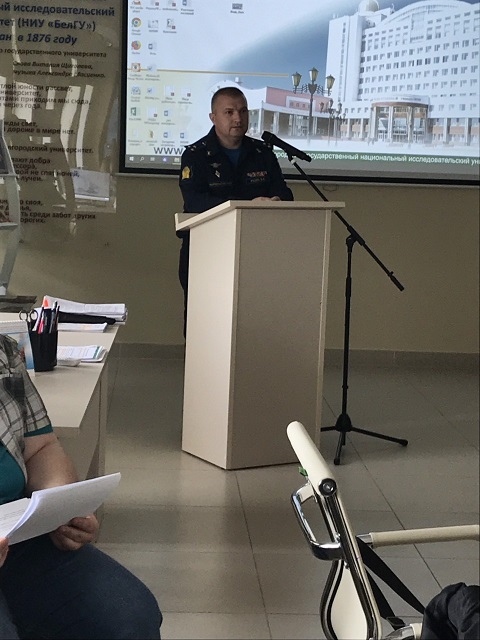 Тематика мероприятия оказалась весьма широкой, обсуждались вопросы, касающиеся психолого-педагогических аспектов воспитания патриотизма у современной молодежи на основе подвига российского народа в период ВОВ; особенностей оказания психологической помощи и поддержки в период ВОВ; психологии героизма и т.д. Родин Виталий Вячеславович освятил вопросы психологического сопровождения военнослужащих в современной армии. План мероприятия включал в себя: выступление полковника Российской армии Родина В.В., студенческие доклады по проблематике круглого стола и их обсуждение, «Диалог на равных» с приглашенным гостем.