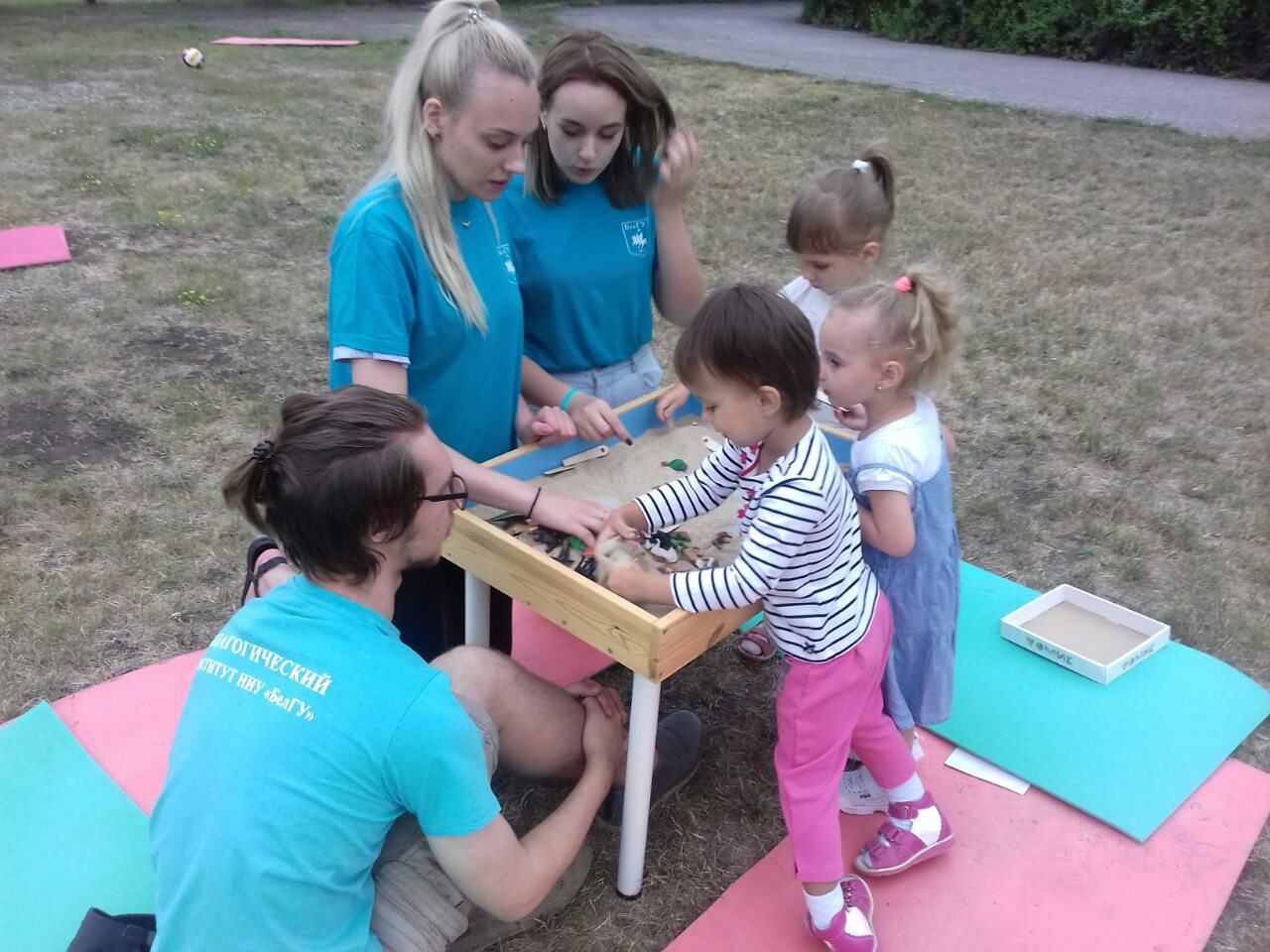 Гости проекта приходят на мероприятие целыми семьями с детьми. Волонтерские отряды педагогического института организуют досуг для подрастающего поколения. В то время когда взрослая публика наслаждается концертной программой, дети играют в подвижные игры, занимаются песочной терапией, арт-терапией, играют с ростовыми куклами, пускают мыльные пузыри. 27 июня волонтеры факультета психологии педагогического института НИУ «БелГУ» приняли участие в реализации проекта «НеслуЧАЙные встречи» работая в качестве аниматоров. Студенты во главе с куратором Левиной Надеждой Николаевной организовали несколько интерактивных площадок: песочной терапии; игр с мячом; арт-терапии; запуска мыльных пузырей; оригами и тд. Хорошее настроение, заряд бодрости получили не только дети и их родители, но и сами волонтеры.