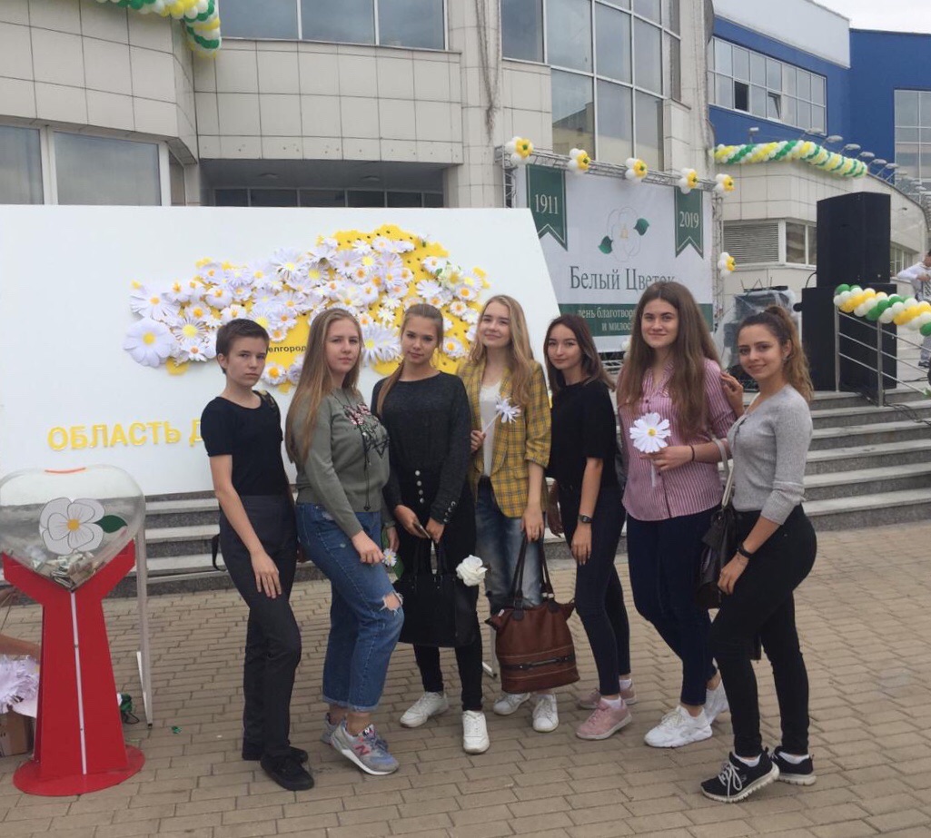 Студенты первого курса стали непосредственными участниками открытия акции «Белый цветок» вместе с сотнями белгородцев, откликнувшимися на призыв делать добро. Они выбирали и приобретали понравившиеся поделки, фотографировались на фоне «Карты добра Белгородской области» и у нарядных фотозон. Завершился праздник добра праздничным концертом творческих и спортивных коллективов города. Акция доказывает: делать добро радостно и просто!