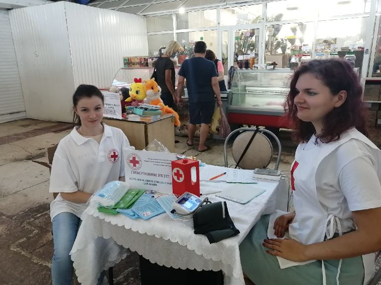 Также в рамках мероприятия была проведена акция "Гипертонии нет!" Студенты волонтеры измеряли всем желающим давление, что оказалось востребованным особенно среди людей пожилого возраста, которые со словами благодарности принимали оказанную им помощь и заботу.