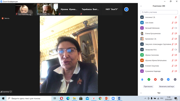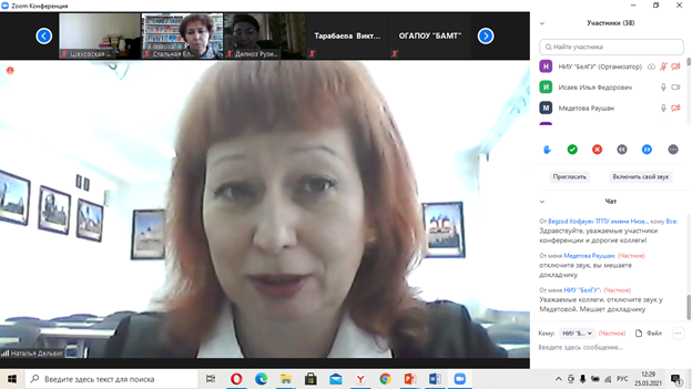Доклад профессора Ташкентского государственного педагогического университета им. Низами (Узбекистан), выпускницы Белгородского государственного педагогического института, Дильноз Рузиевой был посвящен профессионально-педагогической культуре преподавателей, создавших доброжелательноеобразовательное пространство в годы её учебы в институте. ДильнозИсомжоновна отметила, что многолетняя научная и педагогическая деятельность преподавателей университета помогла осознать, какое огромное значение имеет профессионально-педагогическая культура в образовательном процессе, особенно в преподавательской деятельности в высшем учебном заведении.