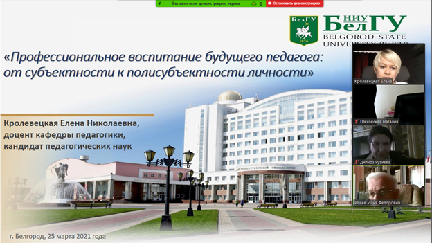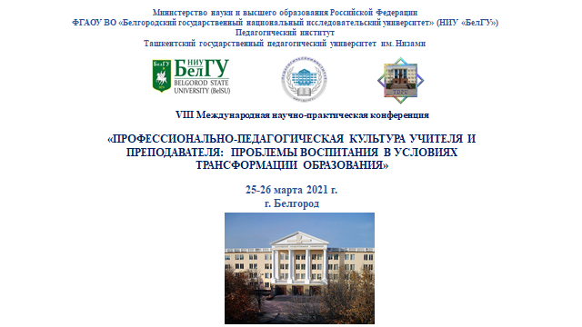 25-26 марта 2021 года на базе педагогического института НИУ «БелГУ» состоялась VIII Международная научно-практическая конференция «Профессионально-педагогическая культура учителя и преподавателя: проблемы воспитания в условиях трансформации образования», посвященная 145-летию Белгородского государственного университета