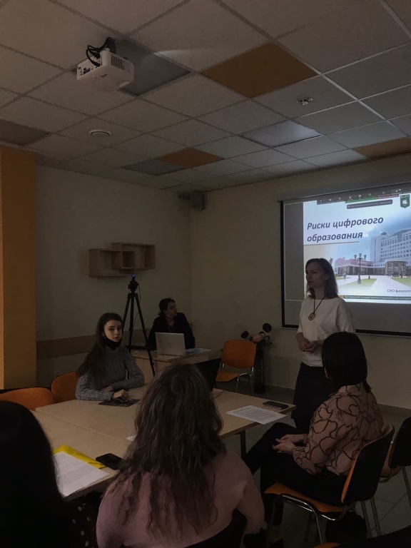 Спустя некоторое время после возвращения в привычный очный формат обучения студентам научного общества стала понятна важность рассмотрения развития цифровизации в учебных заведениях. В итоге данная идея реализовалась на плановом заседании СНО факультета психологии на тему: «Риски цифрового образования».