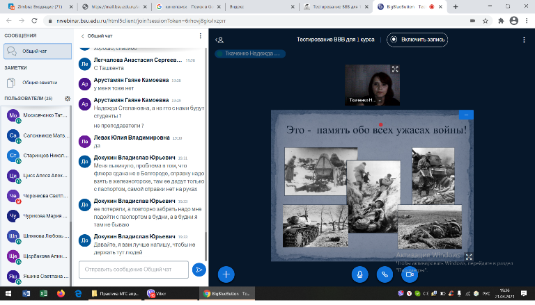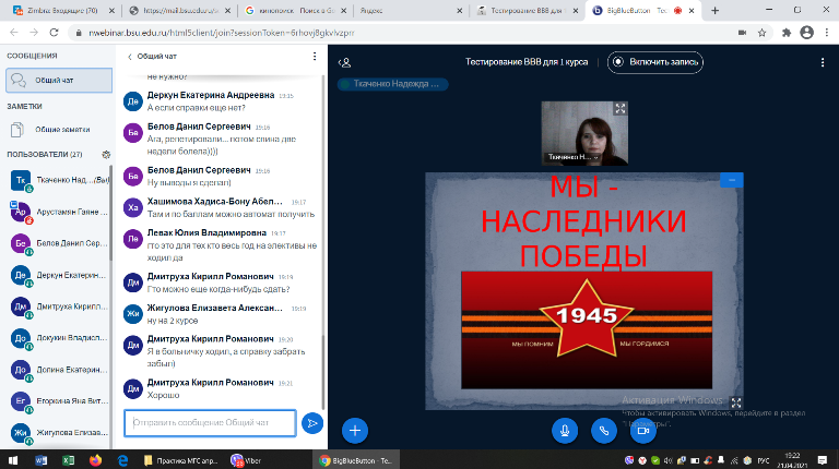 21 апреля на факультете психологии в рамках Героико-патриотического месячника «Поклонимся великим тем годам», посвященного 76 годовщине Победы в ВОВ в режиме видеоконференций был проведен кураторский час «Мы наследники победы».